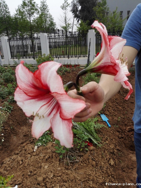 突然想起来被小童意外剪下的那两朵珍稀品种朱顶红