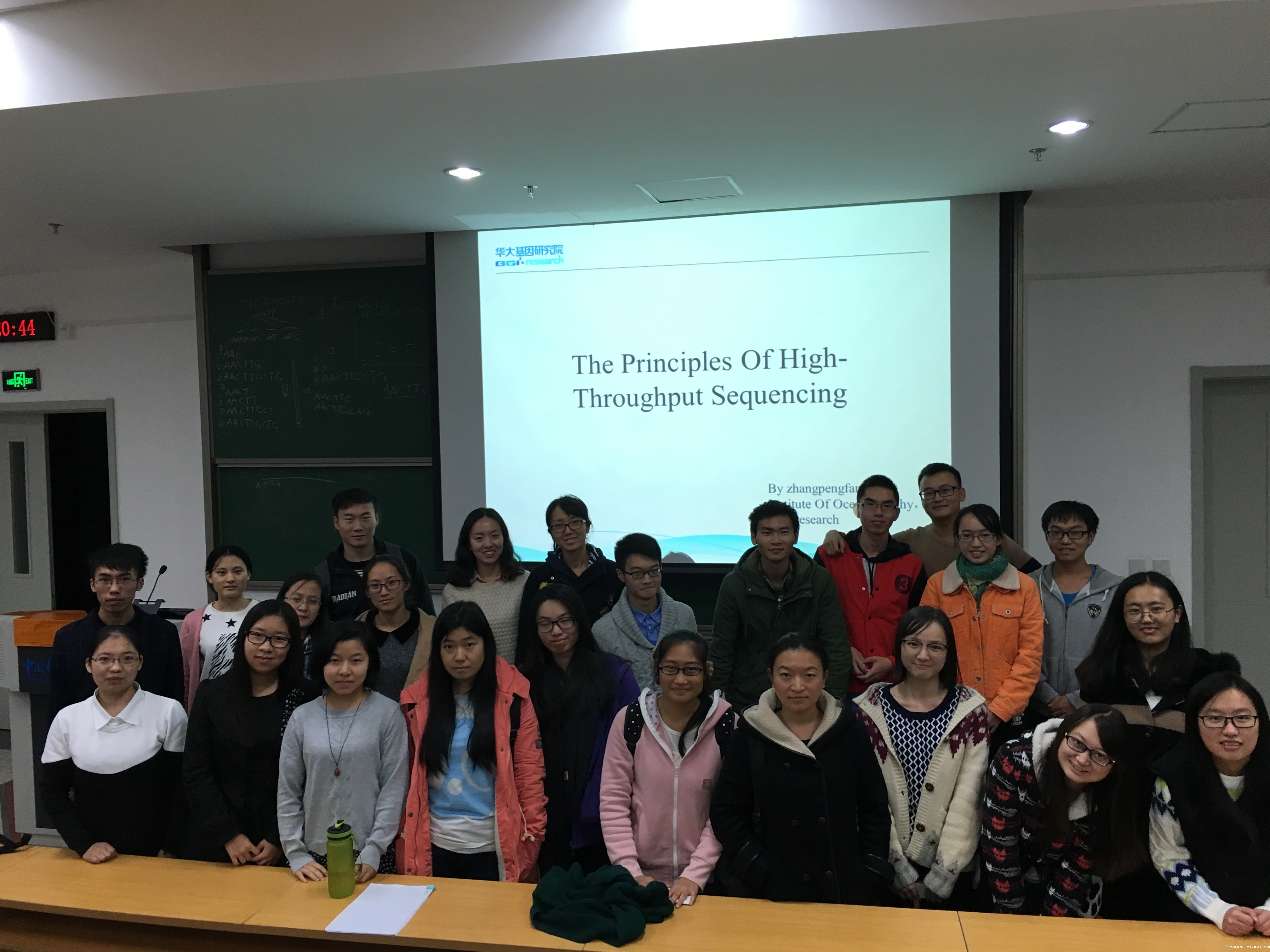 第一期由活动的发起人来自华大基因的张鹏帆同学,他与大家分享的主题是《宏基因组分析的策略及案例讲解》,围绕微生物群落分析方法及各方法的利弊的介绍、基于高通量测序16s扩增子的生物信息分析流程、宏基因组的分析流程及经典案例介绍四个板块的讲解。活动过后,参与活动的班级同学反响异常激烈,大家都被张鹏帆同学的专业知识和讲说能力所折服,第一讲得到了班级很多同学的认可,也激励到班里其他的"有志青年",活动刚结束就有同学开始预约做下一次活动主讲人。