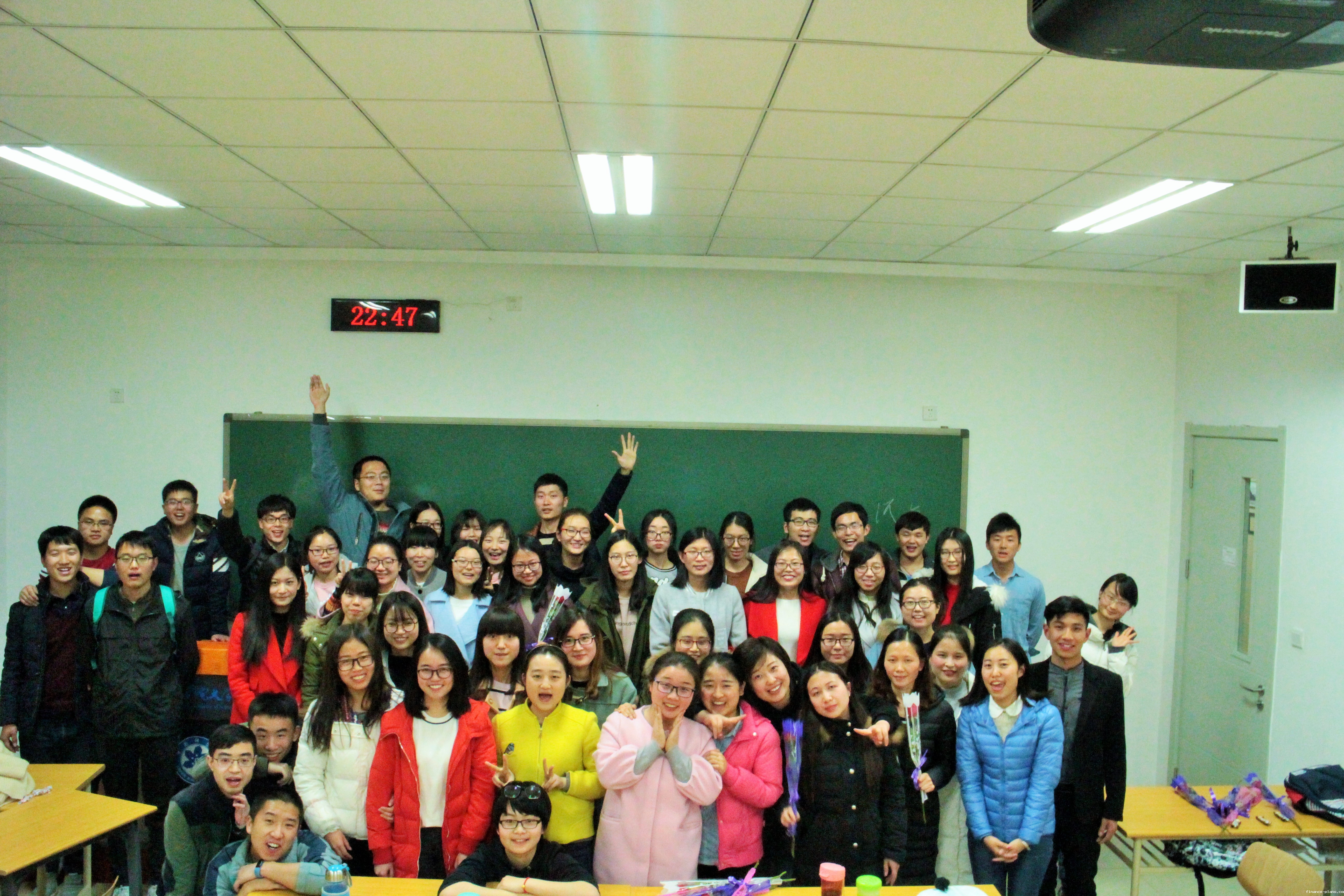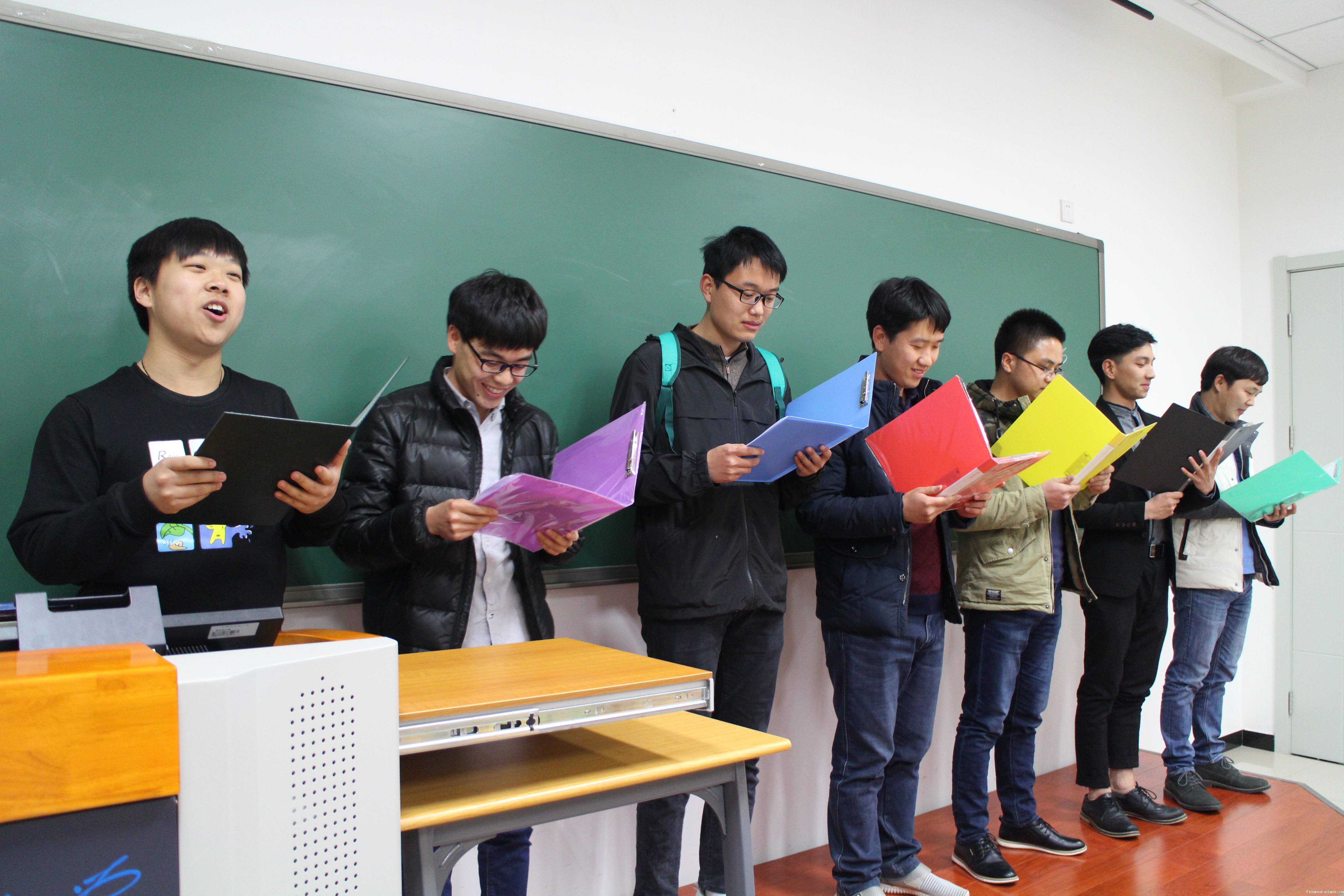 一进教室就感受到分外特别的氛围,男生们在教室后扎堆,个个都是要干一件大事的样子。9点50分,活动正式开始,“惊喜”终于要揭开神秘面纱。班长蒋铮同学代表全体男生向女生们献上最诚挚的祝福,希望510班每位女神都能天天开心幸福。当然仅仅祝福是不够的,每个男生宿舍都精心准备了一个节目。首先是蒋铮,闫培涵和束文举同学为大家带来《南方姑娘》,虽然有一些紧张羞涩,但温暖的歌声让在座每一位同学都感受到他们的用心。接下来是4公寓8栋882男神俱乐部特别的歌—朗诵节目。“轻轻地尝一口你说的爱我,还在回味你给过的温柔,我轻轻地尝一口这香浓的诱惑,我喜欢的样子你都有……”不管是以朗诵还是歌唱的形式,都是甜甜的。束文举同学是今晚的文艺担当,《假如爱有天意》和《天空之城》两首吉他独奏,流水般的吉他声让音符淌入每位同学的心房。