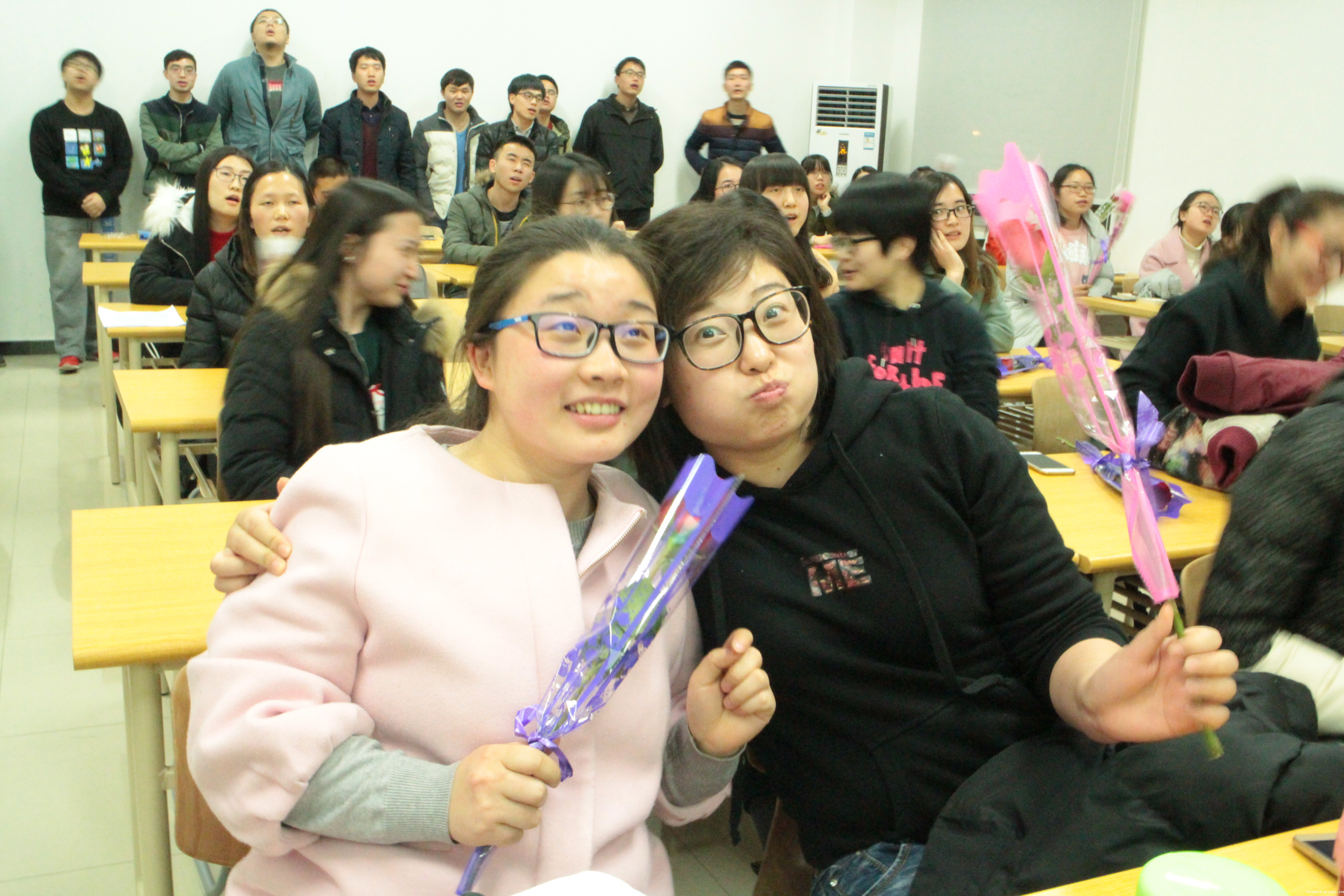 女生们还沉浸在回忆杀的感动中,510男人帮又带来一记玫瑰巧克力暴击。相信每一个女孩子在收到玫瑰花的那一刻都是怦然心动,幸福满满的。有的女生甚至感叹虽然人生第一次收到玫瑰是班里女生节送的,还是非常感动了。最后,全场大合唱《同桌的你》,玫瑰的馨香和510大家庭的温暖包裹着每个人。