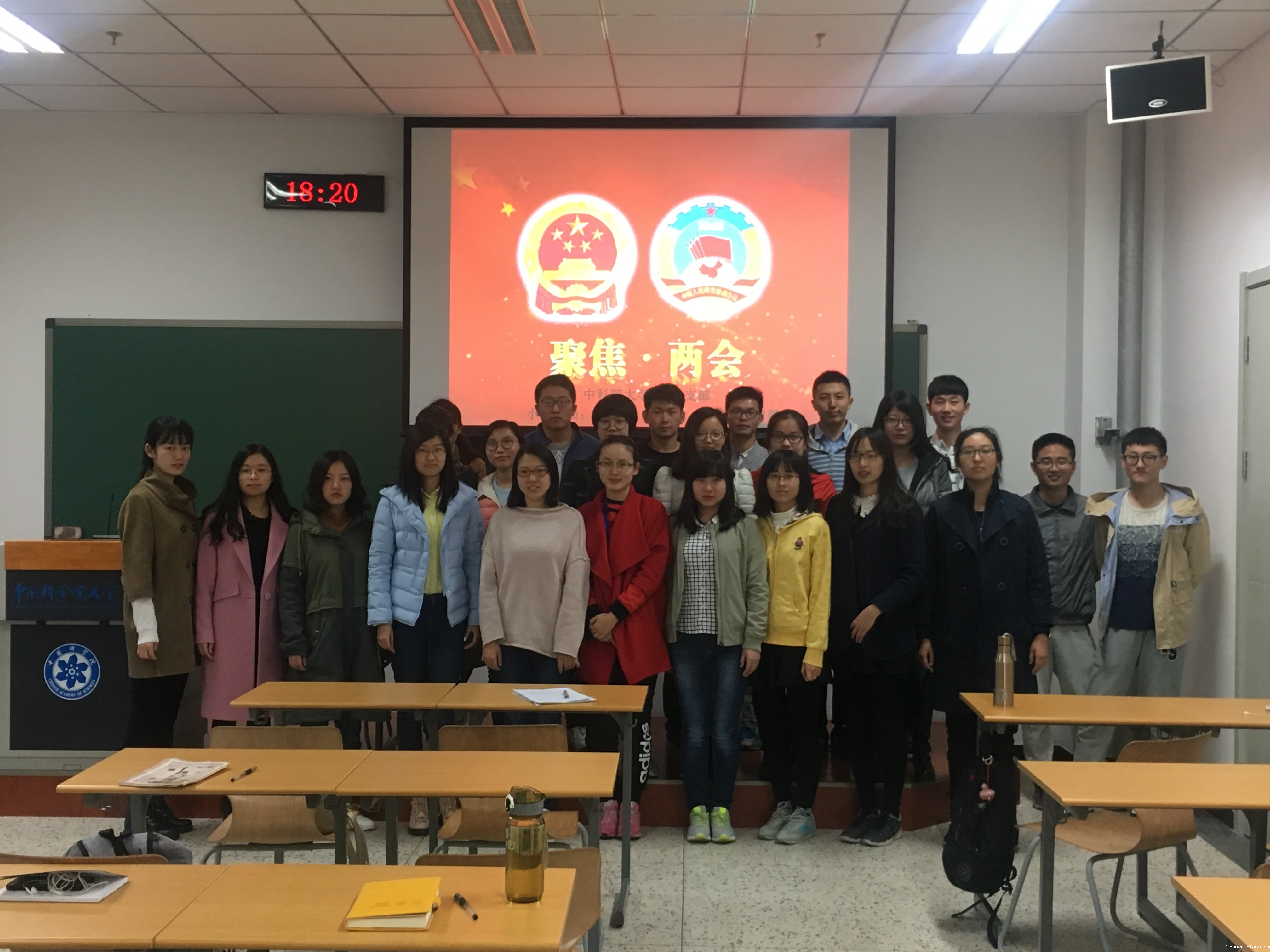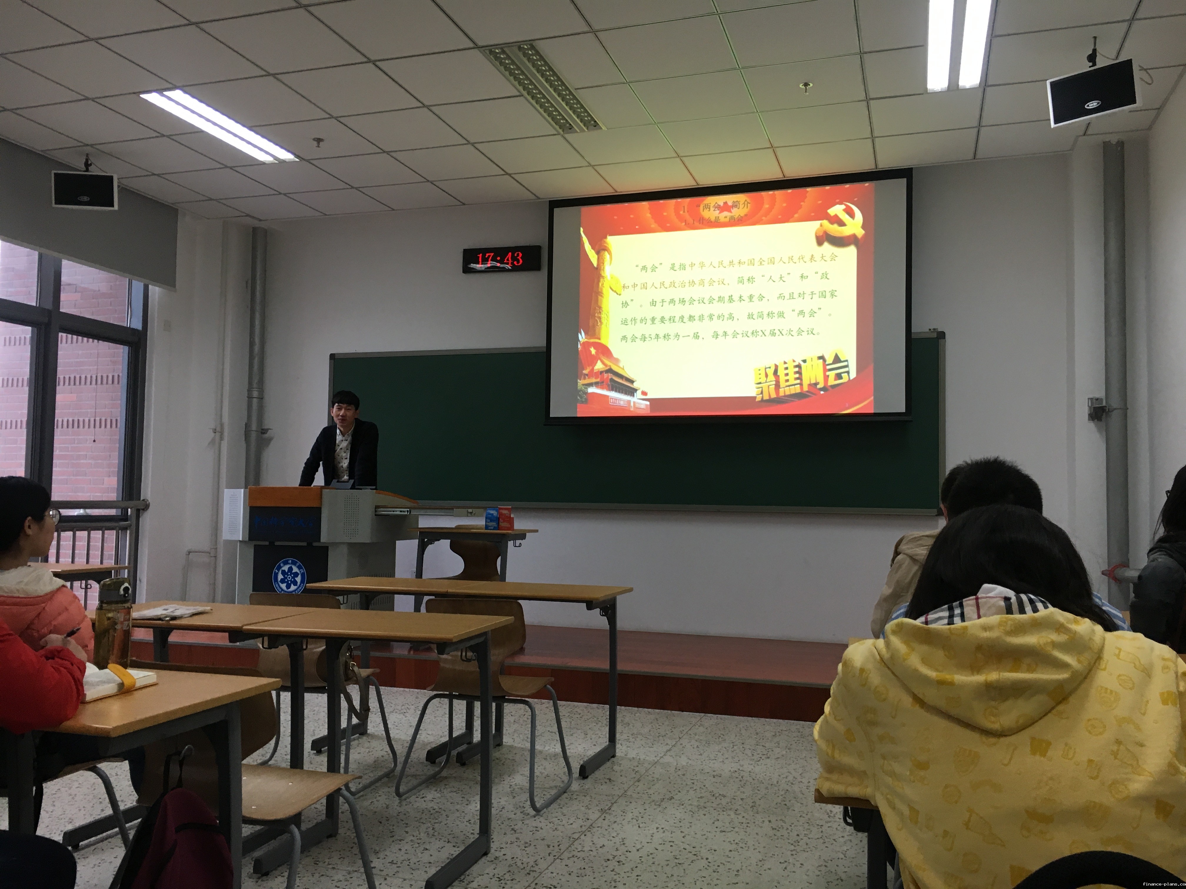 会议伊始,曹震向大家展示“两会”介绍的短片,通过视频大家了解到“两会”召开的意义和制度,今年的政府工作报告实事求是的总结了我国5年的工作,并提出了未来几年的主要任务,增进了大家对于“两会”的了解,接着介绍了参与“两会”的人大代表选举,2017年“两会”提到的问题都是事关改革和发展的热点,同学们陆续站起来说出了自己的感受。