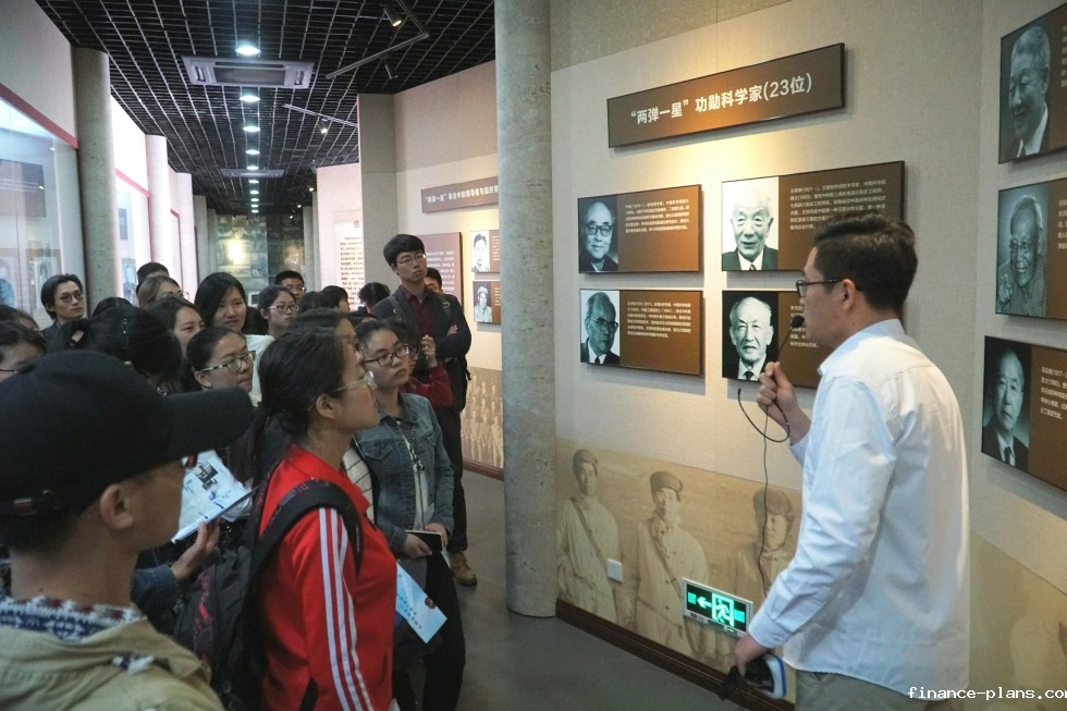 “两弹一星”是中国彪炳史册的伟大成就,中国科学院当时一半以上的科研人员参与其中。中国科学院利用怀柔火箭基地原址进行改造,建设了“中国科学院与两弹一星”纪念馆。来到纪念馆前,大家首先在馆前合影留恋。怀着对老一辈科学家的崇敬之情,同学们依次参观了“两弹一星攻关史”、“两弹一星事业攻关人物”、“中科院早期学科奠基人”三个展厅。感谢讲解员生动精彩的讲说,我们了解了在当时十分艰苦的条件下,老一辈科学家是怎样积极主动响应党和国家的召唤,义无反顾地投身到尖端科技大研究当中,并为我国航天事业做出了卓越的贡献。在参观“两弹一星事业攻关人物”展厅过程中,大家深深地被钱学森、郭永怀、邓稼先等“两弹元勋”石破天惊的气概和革命精神所感动。其中最让我们震撼的是科学家郭永怀烈士,他最后一刻将国家利益放在第一位的精神令我们动容。1968年12月5日,郭永怀先生在青海基地发现一个重要数据,急于赶回北京研究。12月5日,他在飞机降落失事坠毁中牺牲。牺牲的时候,他把装有数据的皮包紧紧抱着,数据才得以完好无损的保留了下来。在郭永怀先生牺牲的第22天,我国第一颗热核导弹试验获得成功。