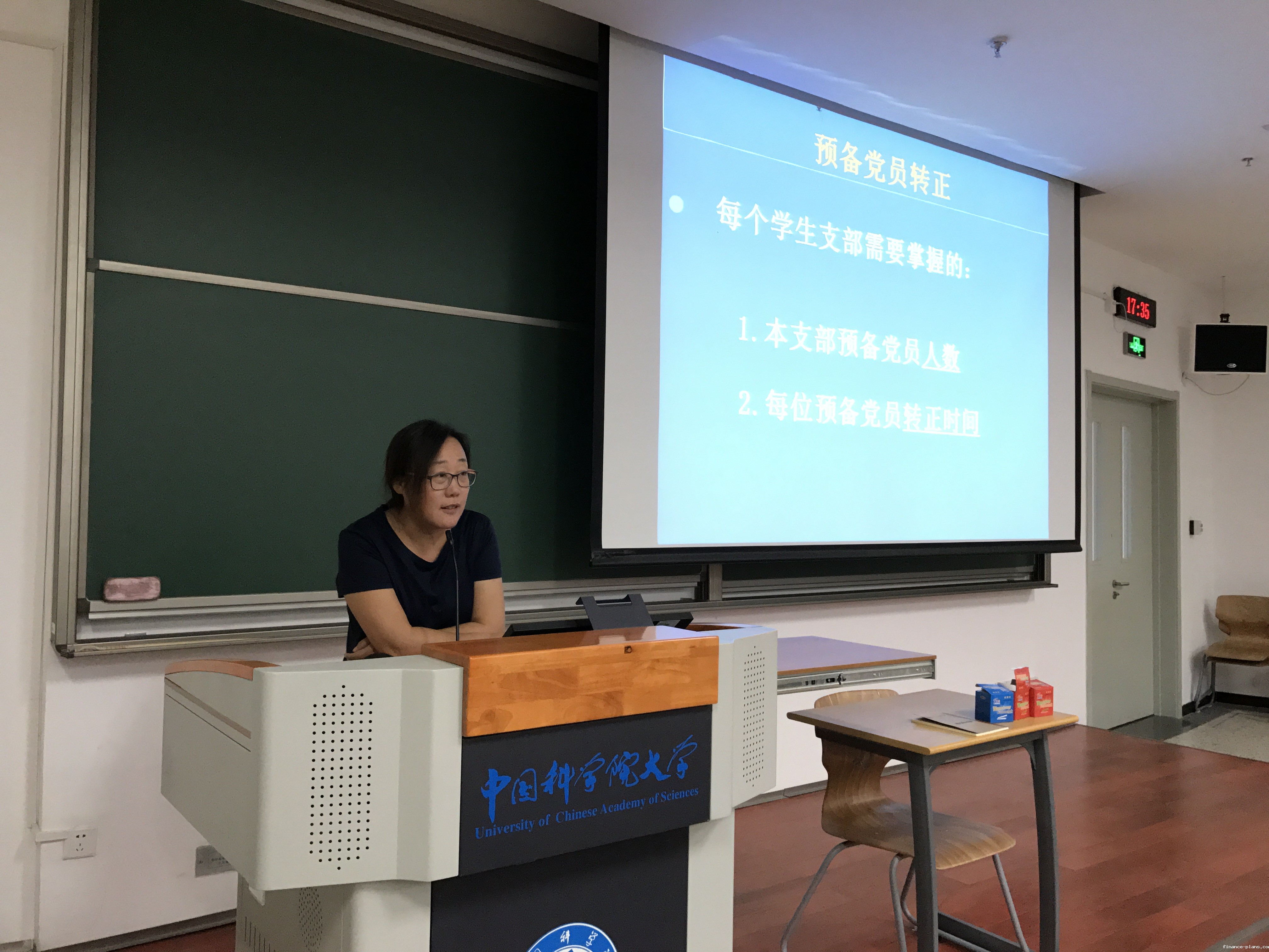 会议开始,孙燕新老师指出近期党务工作的重点。包括预备党员的转正。分别对申请书、预备党员考察表的填写以及转正时间做出详细说明,特别强调了表格填写的规范问题,嘱咐同学们写材料时要注意细节。孙老师说,学院党员人数多,党委工作繁重,班委应与支委密切配合,做好党员的发展工作。