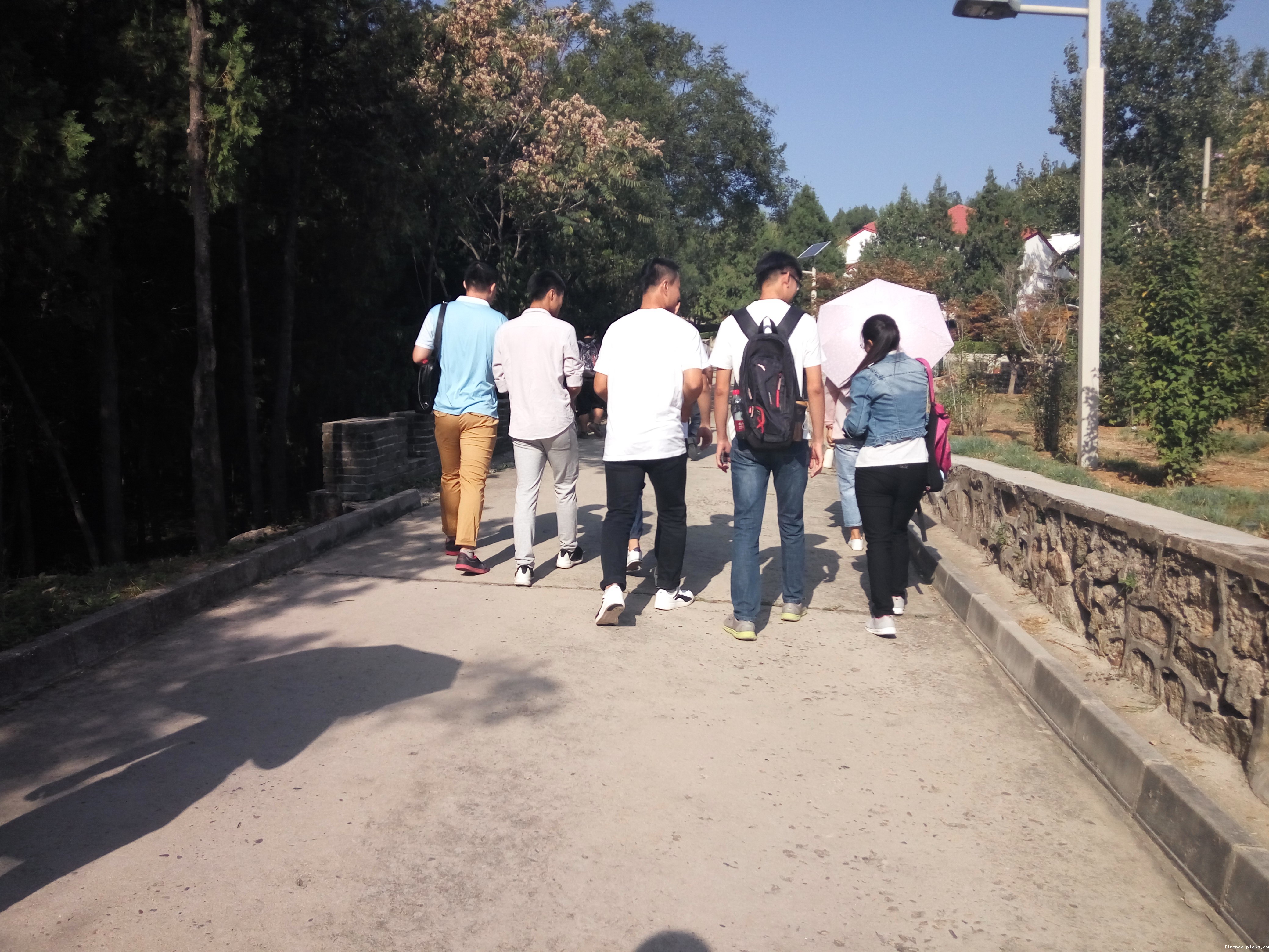 起初,同学们并不熟悉,但这一路前行的背影中,并没有看出彼此间的距离。一路交谈,一路嬉笑,一路拍照。这盘旋的台阶路,是从陌生到熟悉的通道。走在绵延通向雁栖湖畔的台阶上,脑海突然浮现出学长学姐的那首诗——《假如你在雁栖湖畔拥有爱情》,假如你在雁栖湖畔拥有爱情,一定要在有明月的晚上,沿着校园开满小花的小路骑车来到雁栖花畔。若是拥有爱情,需在有明月的晚上骑车前往,那在这艳阳之下,步行前往,不知是否会遇见爱情。
