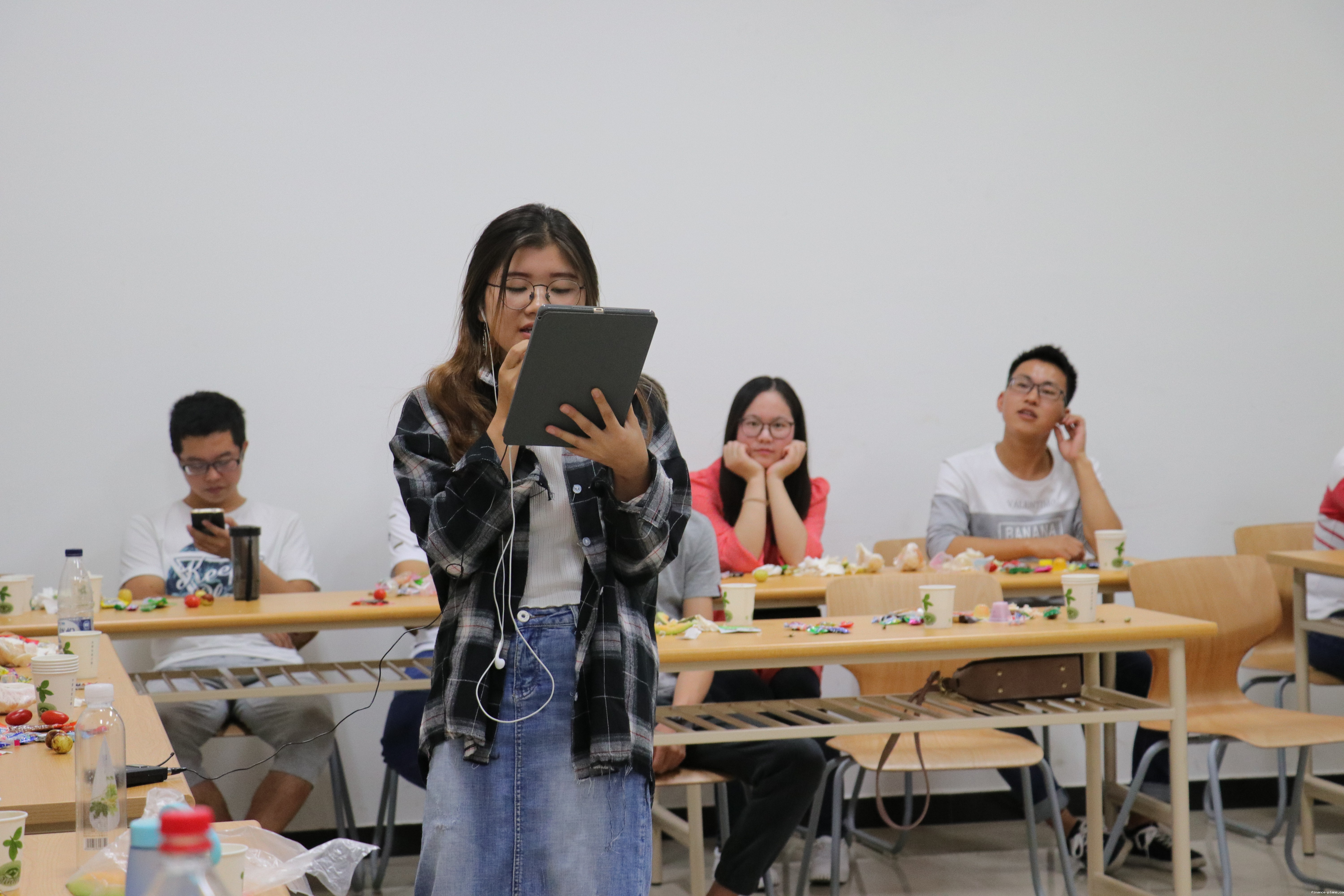趁着这个气氛,同学们组织了“你比我猜”,“抢凳子”,“吹乒乓球”等一系列有趣的团队小游戏,在游戏中我们将同学们分为四组,互相竞赛。各组同学热情参与,积极配合,大家都充分发挥出了自己的长处,有的擅长技巧,有的行动敏捷,大家努力地为团队在比赛中争取着胜利。值得一提的是在“抢凳子”这一游戏中,多位男同学充分展现了绅士风度,主动把赢得比赛的机会让给了女同学,因此获得了大家热烈的喝彩。在一波又一波的喝彩与欢笑声中,晚会在欢快的进行着。