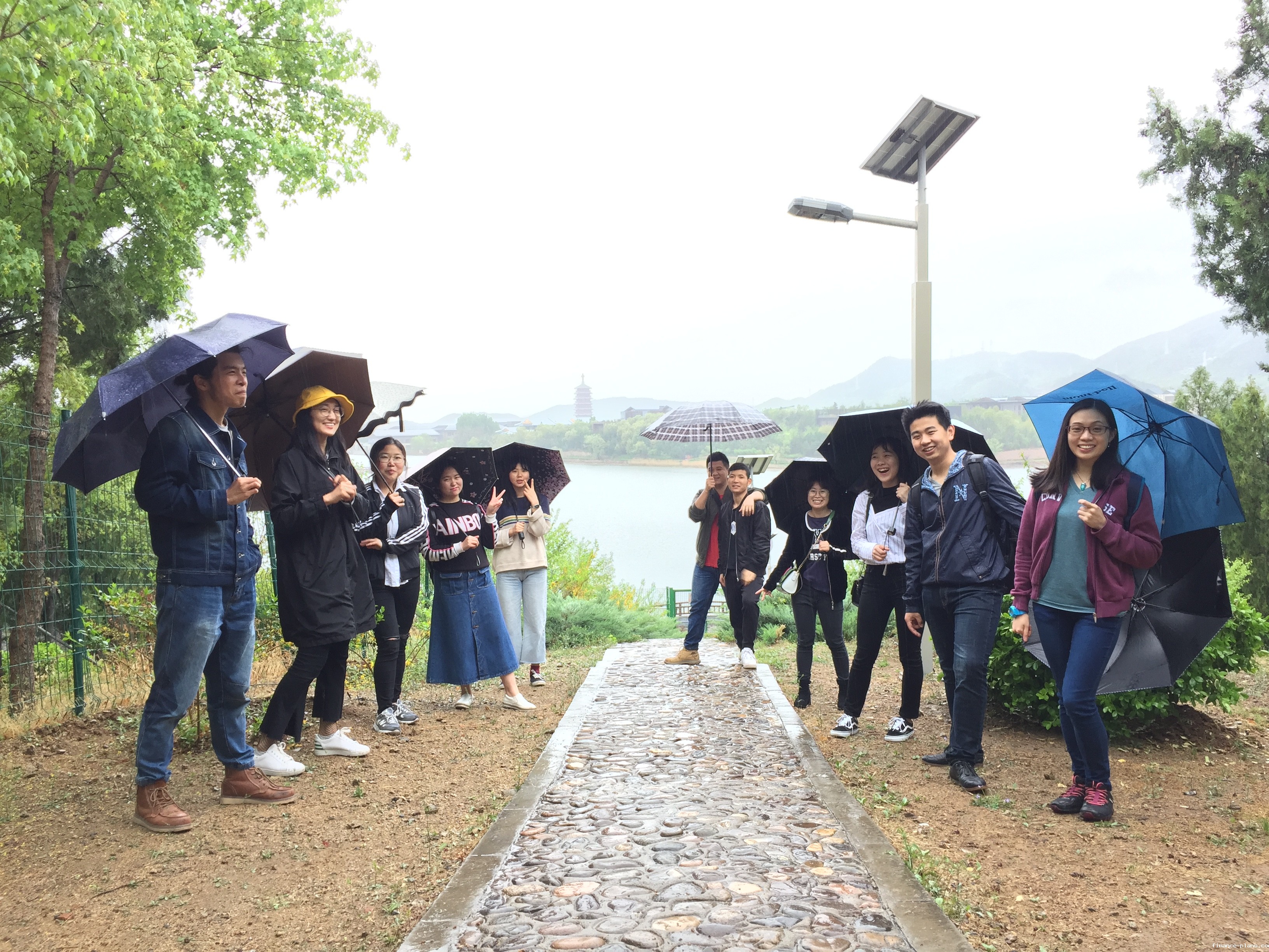 平日里大家都看到的是风和日丽,晴空万里,但我们却有不一样的体验,一览雁栖湖的别样春景。下午还下着小雨,大家依旧热情不减,集合时康剑同学说:“下雨就没有雾霾了,雁栖湖肯定更加漂亮,”同学中一阵欢笑。引导大家形成乐观积极的生活态度,这也是活动的初衷。