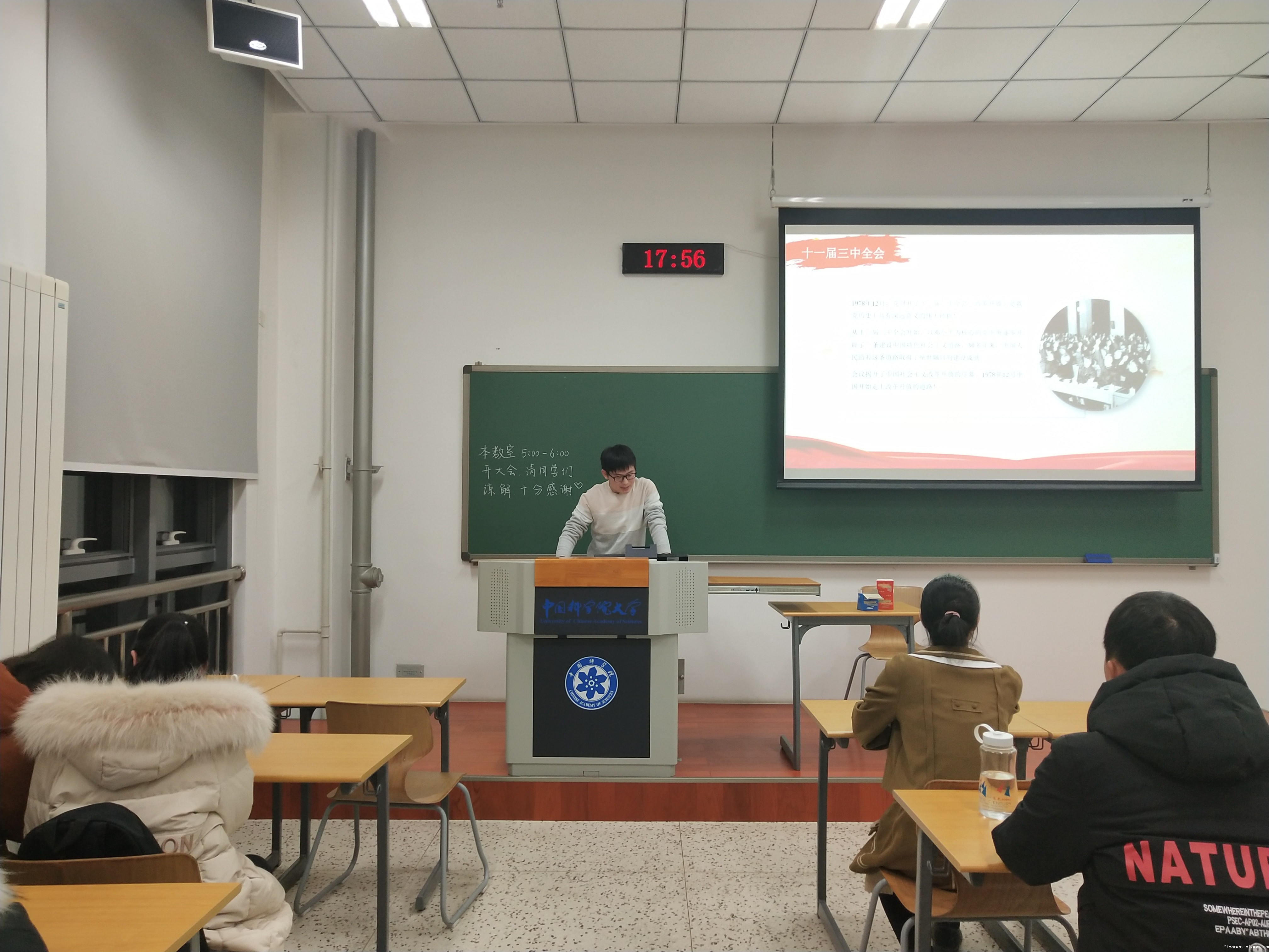 2019年1月3日,504支部全体成员在教二113举行了“改革开放四十周年”的主题活动。本次活动由支部组织委员马博宇主持,整个活动围绕我国改革开放重大举措,支部成员进行改革开放主题分享进行。