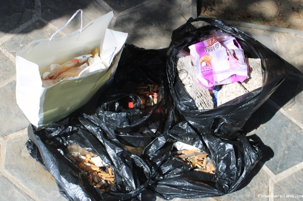 道路上,垃圾逐渐露出来:纸巾,塑料包装纸,烟头,泡沫塑料块。体积不大,数量却不少,尤其是烟头。烟头的种类多种多样,有黄鹤楼,玉溪,红梅,中南海,人民大会堂,黄果树,钻石,红塔山等。其中,钻石和中南海的数量最多。平时看似貌不惊人的烟头,此刻却成了破坏环境的始作俑者。千里之堤,毁于蚁穴;大美雁栖,脏于烟头。