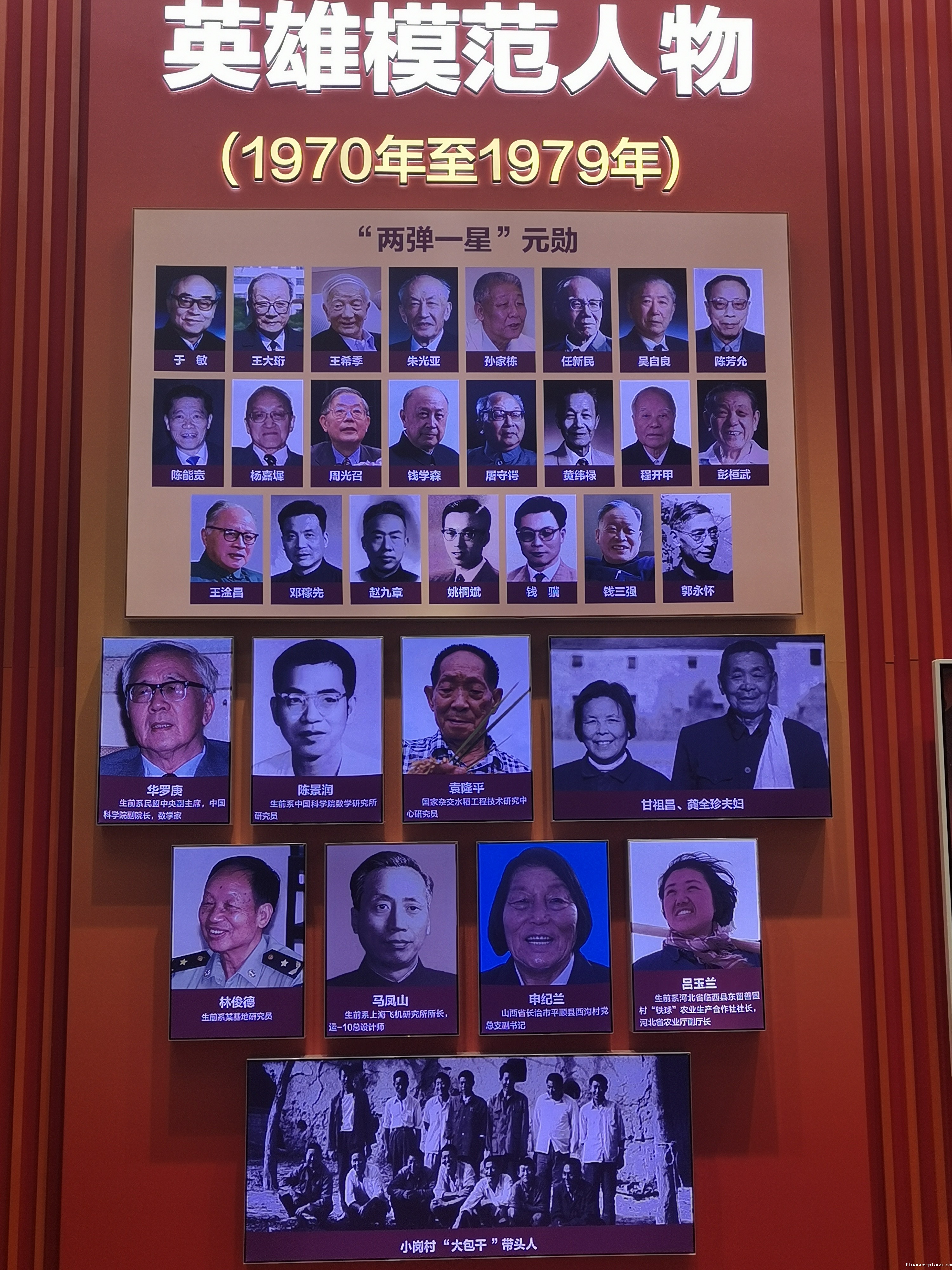 1950年9月,中国留学归国人员在“威尔逊总统号”邮轮的合影照片,吸引着同学们驻足观看。邓稼先、李四光、华罗庚、郭永怀等科学家返回祖国,投身于祖国建设。至1953年,约有2000名留学生和专家学者陆续回国。而这些人,很多都成为了中国科技领域的开创者和奠基人。1956年,中共中央向全国人民发出“向科学进军”的号召,无数科学家们积极响应这一号召。《1956-1967年科学技术发展远景规划纲要》的实施,更是对新中国科技事业的发展产生了深远影响。紧接着,同学们的目光被“中国科学院科学将近一等奖获得者”的三张照片吸引。照片上的人正是中科院人和国科大人熟知的钱学森、华罗庚和吴文俊。这三位科学家于1957年1月,获得了中国科学院颁发的中国科学院科学奖金(即第一届国家自然科学奖)。1970年至1979年的“两弹一星”元勋的照片被“镌刻”在了“英雄模范人物”下面,一个个熟悉的名字:钱学森、邓稼先、于敏等老科学家们映入眼帘。hth手机版登录入口“两弹一星”纪念馆便是展出“两弹一星”的展馆,还未去参观过“两弹一星”纪念馆的同学们兴奋地表示有机会一定要前往观看。南仁东先生负责的FAST望远镜,是中国科学院国家天文台的制作的。自落成之初便成为世界最大单口径、最灵敏的射电望远镜。