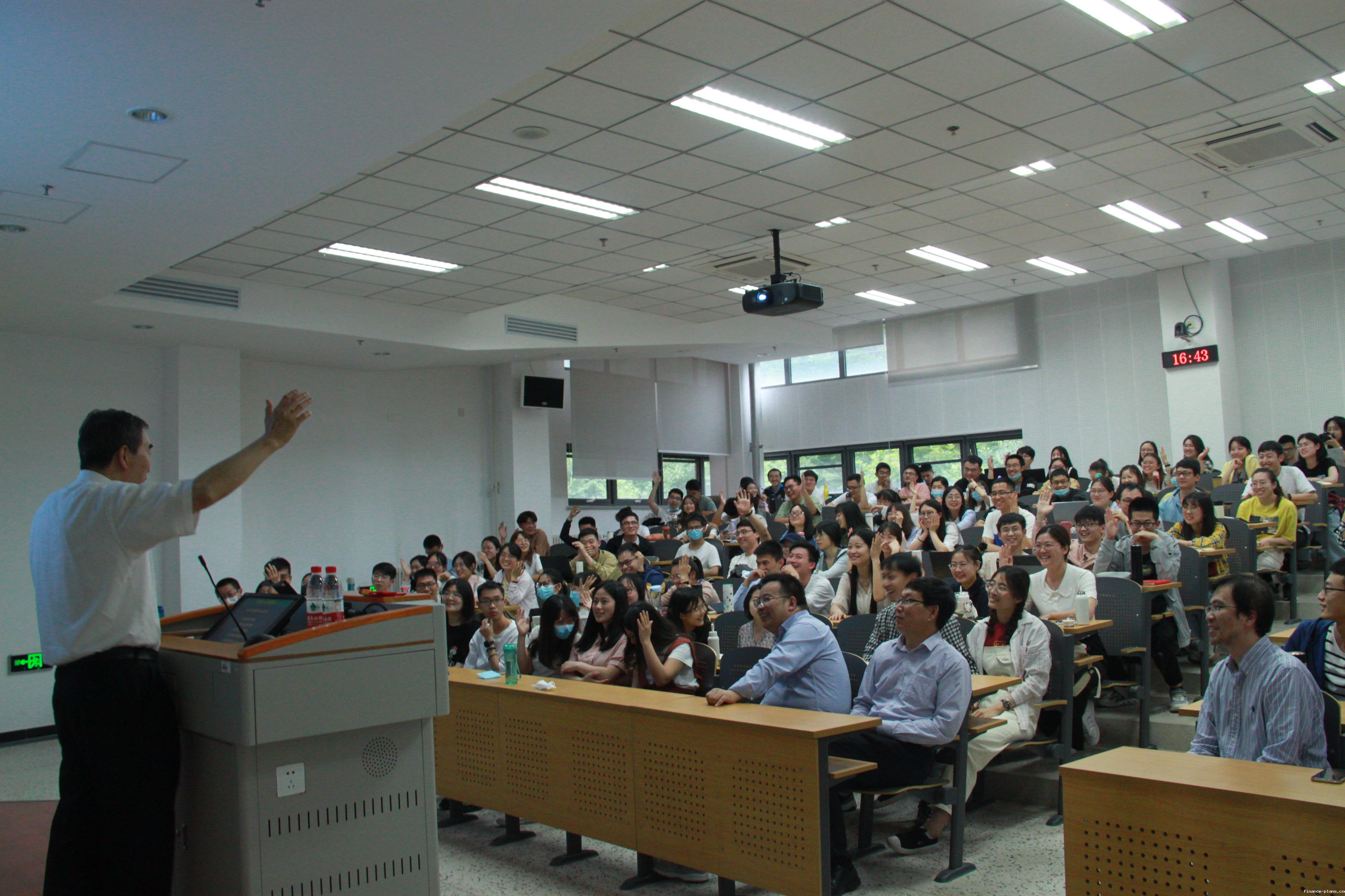 讲座的最后,蒲院士特别向同学们提出了“谈科学人生”的话题。教导同学们:专业不应该限制未来的职业选择,打破“本行”与“改行”的概念。蒲院士向大家提出了“你为什么要读研?”的问题,同学们积极参与互动,现场笑声、掌声不断。蒲院士告诉我们,读研可能有很多目的,但是在读研的过程中,解决问题的能力、学习与人打交道的能力应当是最值得学习的。最后,蒲院士告诉大家:科研应当是快乐的,希望我们每个人都在科研的人生中体会到乐趣。祝大家学好科学,成为科学家或科学人!
