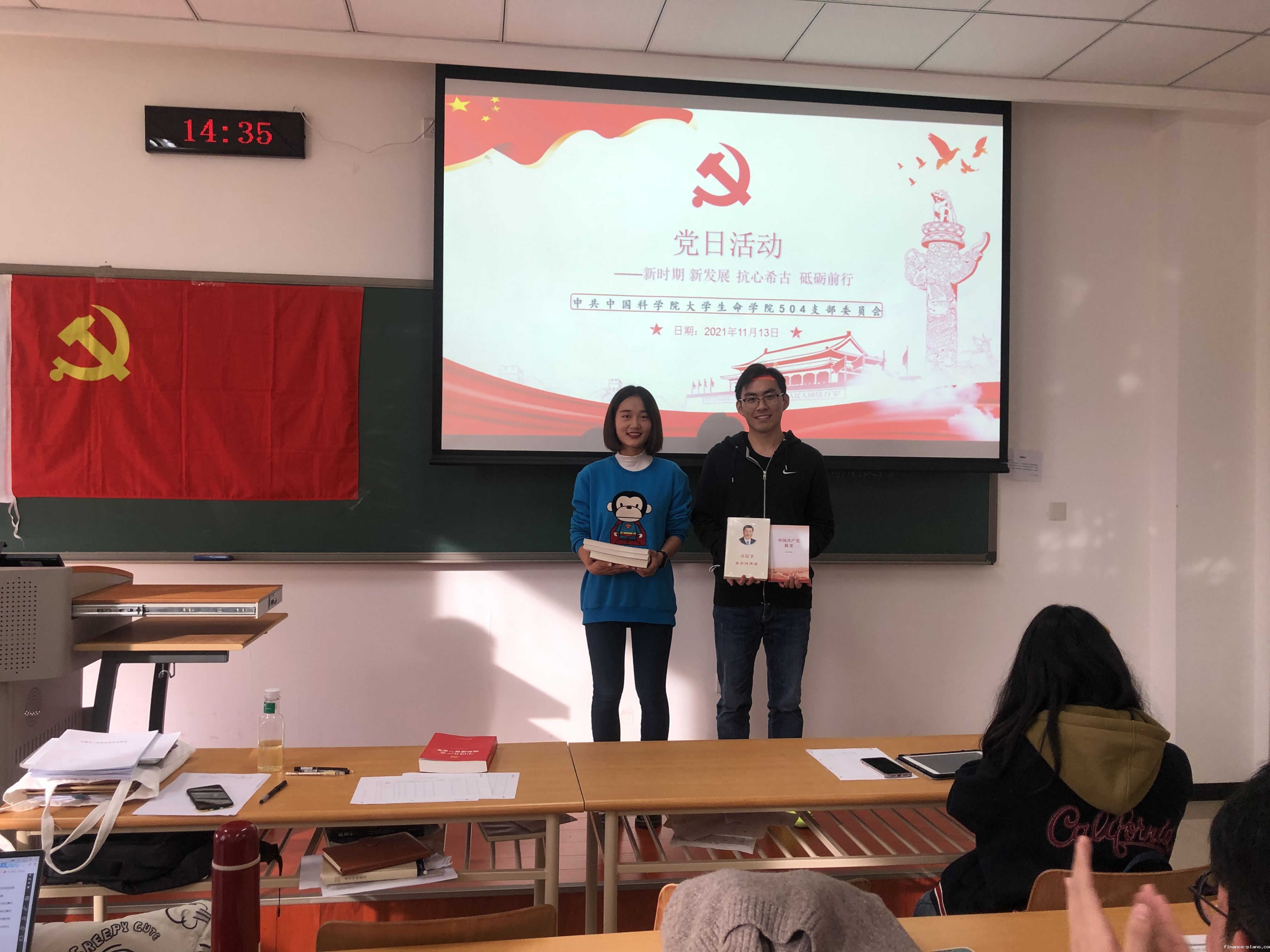 活动最后,为肯定两个党小组的学习成果并激励更多的同志作为活动主体积极参与党支部的活动,李毅赠与了两个小组《中国共产党简史》等红色书籍,鼓励支部成员们汲取更多的知识养分,不断提高自身的理论素养,从历史和老一辈党员身上学习经验、领悟精神,牢记自己作为“国家队”“国家人”的使命,心系“国家事”,肩扛“国家责”。至此,本次党日活动圆满结束。