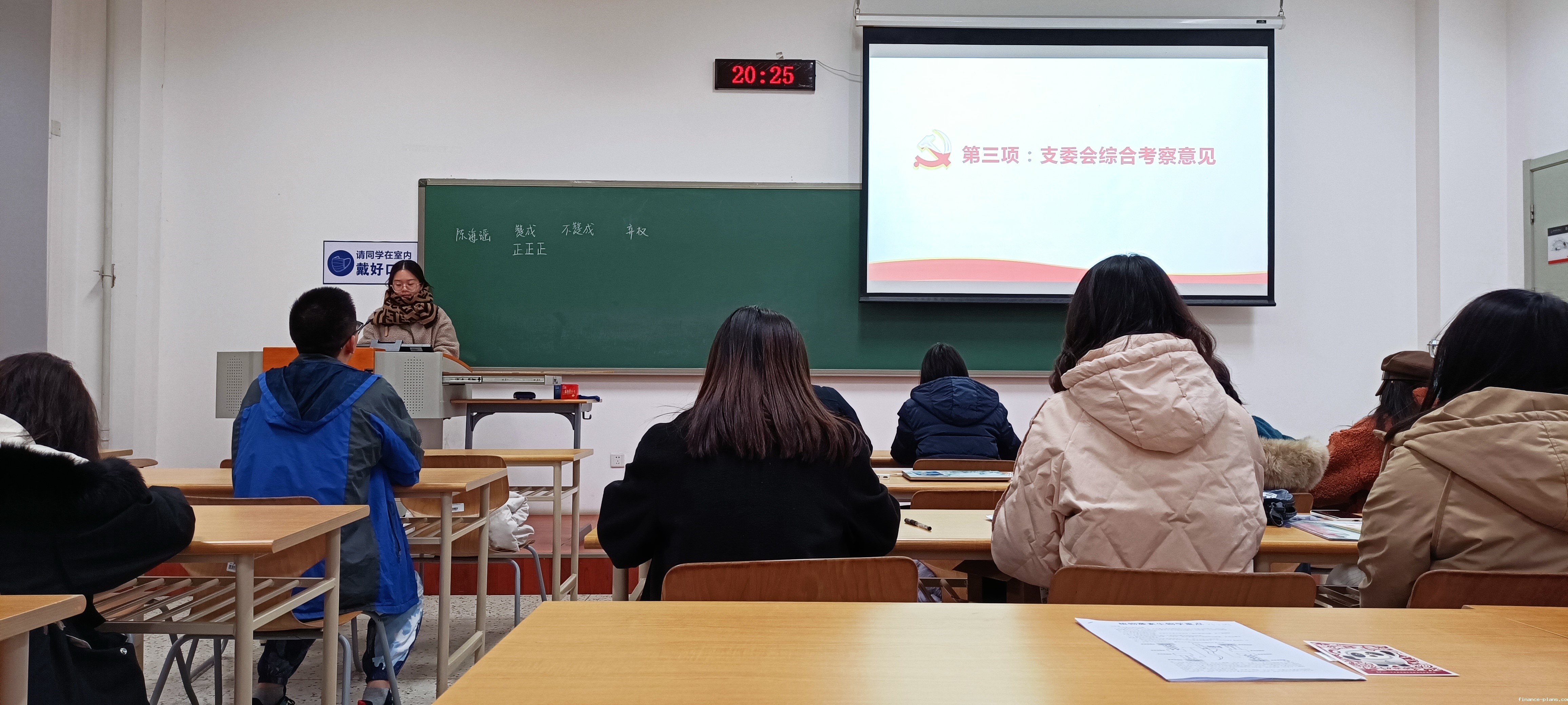 有表决权的正式党员就预备党员陈海瑶、魏雨欣同志入党事宜进行了无记名投票表决。由梁承萍同志负责发票、收票,袁焯同志监票、李雁同志计票,并宣布最终投票结果。大会宣布同意陈海瑶、魏雨欣同志按期转为中共正式党员。