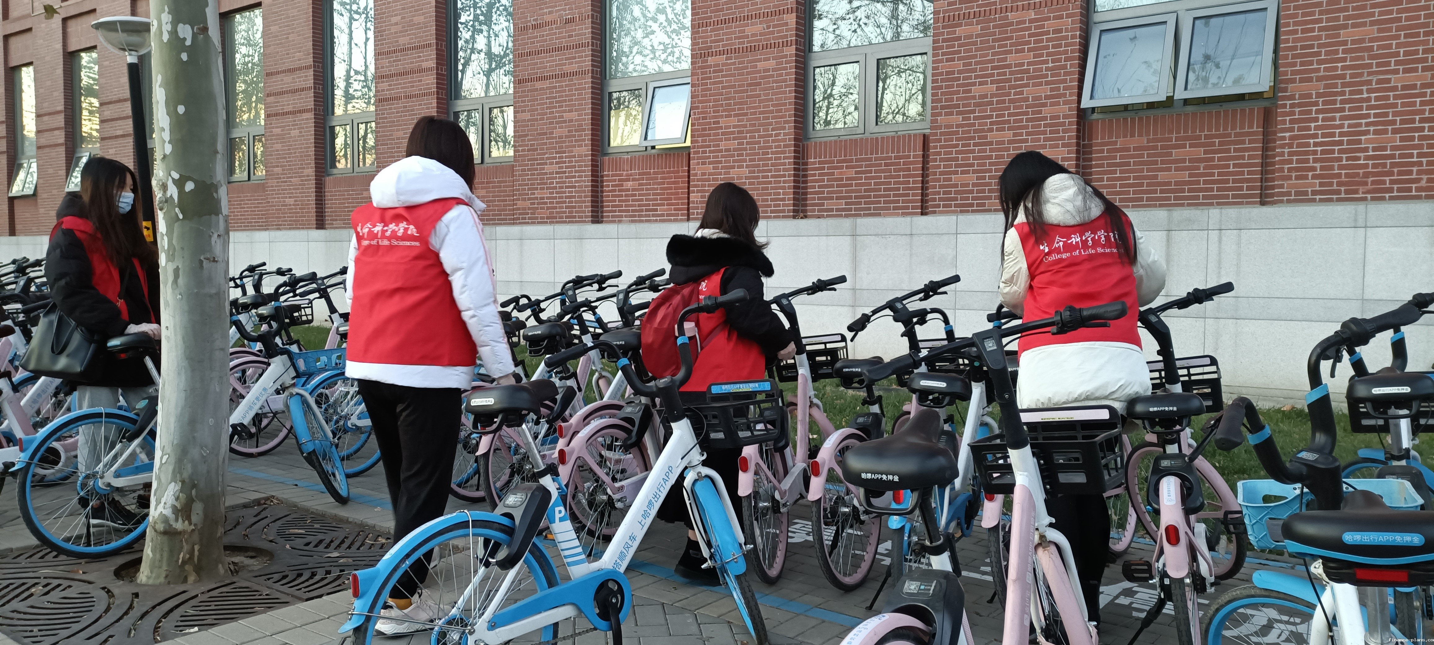 为认真贯彻落实党的十九届六中全会精神,要始终把人民放在心中最高位置,大力发扬“半条被子”精神。生命学院各党支部从关注身边生活出发,收集同学所需,梳理“我为群众办实事”的具体项目,发现校园内共享单车存在车筐内存有垃圾、停车区域共享单车摆放不整齐等现象,决定接力进行摆放共享单车和清理车筐垃圾活动。512党支部参与了这一接力活动,本次活动以每个大宿舍内正式党员、预备党员,入党积极分子为小组开展,各小组利用空闲课余时间对hth手机版登录入口第二教学楼、食堂、公寓等区域集中摆放的共享单车进行车筐内垃圾清理,规范排列共享单车,努力打造安全、清洁、舒适的校园环境。活动最后,所有同志齐聚于雁栖湖东区三食堂门口合影留念。