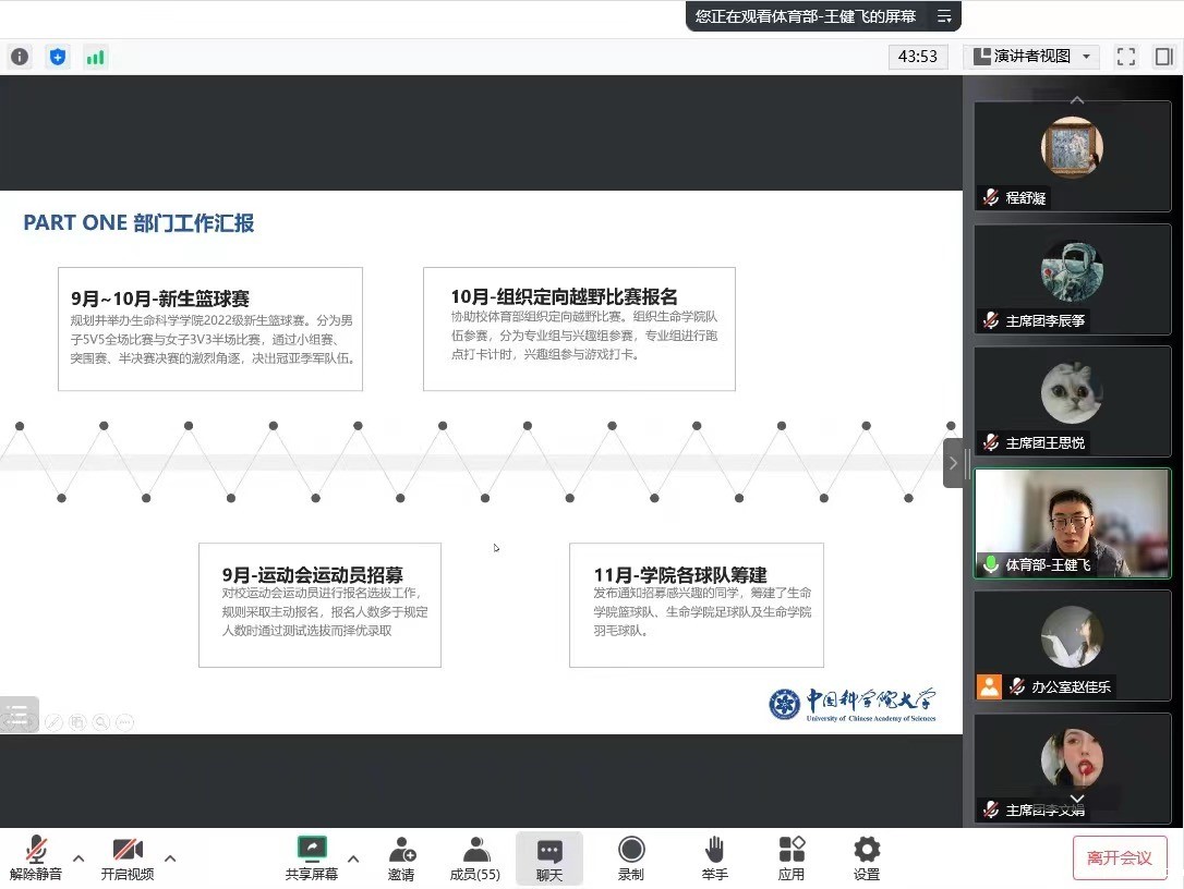 为加强华体育会app官方下载官网学生会的工作能力,总结学生会秋季学期的工作经验,进一步提高学院学生会学生干部的综合素质能力,推进学生会在新的一年高质量发展,2022年12月29日上午,hth手机版登录入口华体育会app官方下载官网线上开展了2022级生命学院学生会秋季学期述职大会。出席本次大会的有生命学院团委书记兼学生主管程舒凝老师、组织员郑馨慧老师、团委委员、学生会全体成员以及各班班长,办公室部长赵佳乐主持了本次会议。