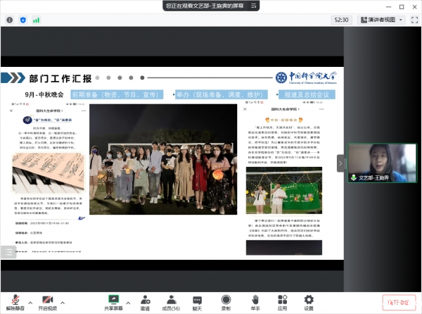 郑老师表示学生会各个部门之间在秋季学期能够协同合作、高效配合,也对学生会这学期成功举办的优秀活动进行了肯定,她还希望在接下来的学生工作中,大家能够再接再厉,在下个学期百尺竿头、更进一步。