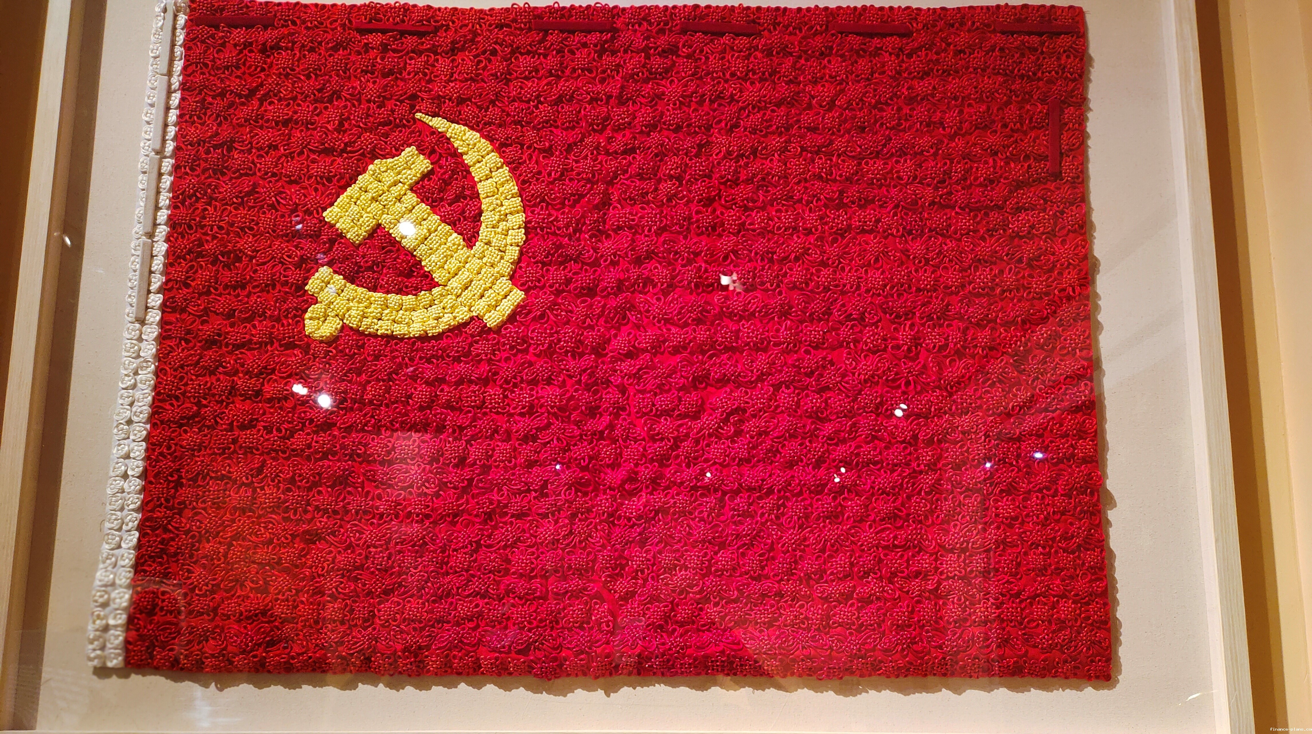 姚瑄容同学在 看到党旗时,感觉十分震撼,她说“这是全国妇联30余名离退休老党员为庆祝建党80周年做成的中国共产党党旗,因为是用中国结缀成的,这面党旗凝聚了老党员们对党的无限热爱之情,是红心永远向党的见证,也是千千万万党员对国家的热爱!”