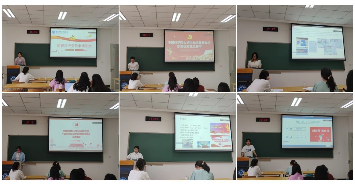 “先进基层党组织”的评选由支部书记或支委进行汇报,主要介绍了支部的理论学习情况、组织情况、学习教育宣传工作、党团班一体化建设情况等。各党支部均严格落实 “三会一课”制度,密切联系群众,开展党团共建活动,系统带领党员和团员同学学习党的二十大精神。此外,各支部开展了一系列特色党建活动,如与北京其他高校的学生党支部进行党建交流,各党支部之间的交流共建,科学家精神学习系列活动等,收效甚好。