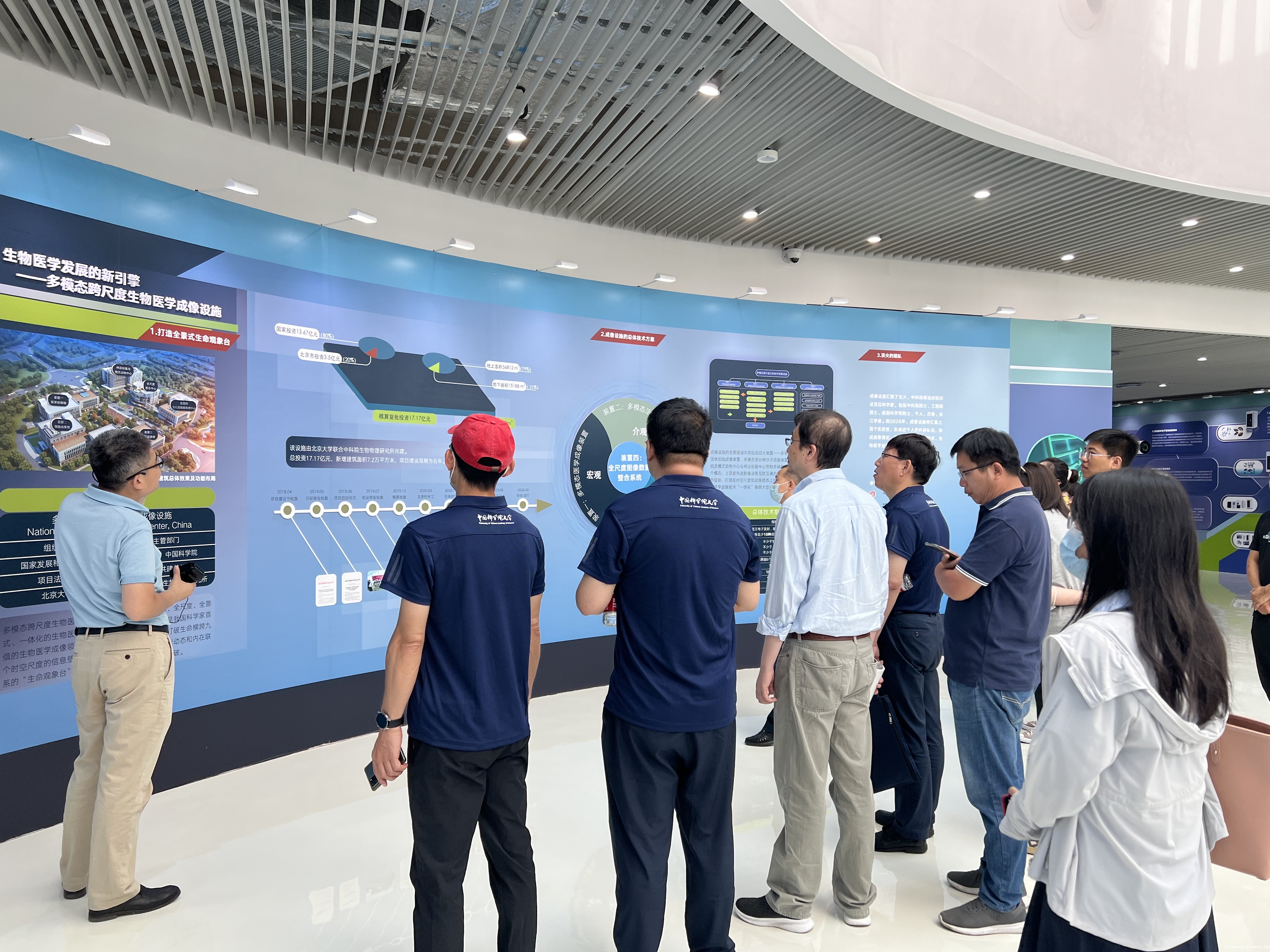 一行人先来到怀柔科学城创新展示中心进行参观,在讲解员的带领下,大家观看了怀柔科学城宣传片,并通过展板、沙盘等方式了解了科学城的大科学装置、交叉研究平台布局和高能同步辐射光源沙盘。