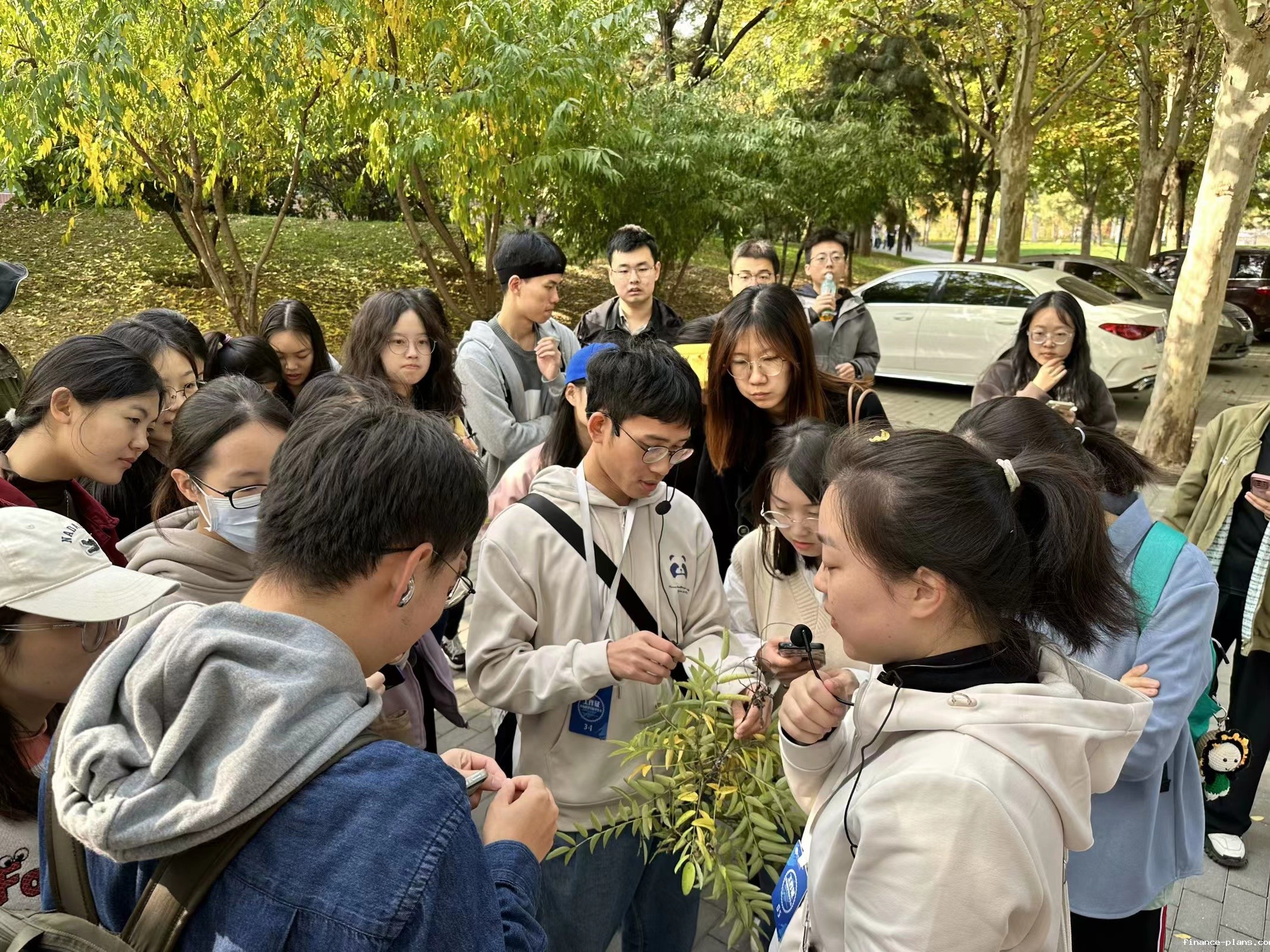 在活动过程中,讲解员们利用他们的专业知识从不同角度为同学们介绍校园的植物:香椿和臭椿除气味以外还可以通过树皮剥落的方式不同进行区分;别名“法国梧桐”的二球悬铃木叶柄下生长着柄下芽;国槐的种子可以在空中旋转飘落,好吃的“蒸槐花”原料是刺槐花而不是国槐;金银忍冬的满树红果是鸟类的美食,却由于味道苦涩并不适于人类食用;通泉草生长在阴湿环境中,相传可以通往黄泉而得名……讲解员们的讲述生动活泼各有侧重,带领同学们从植物学专业的角度重新观察校园里已经见惯的一草一木,从中了解属于植物的魅力。