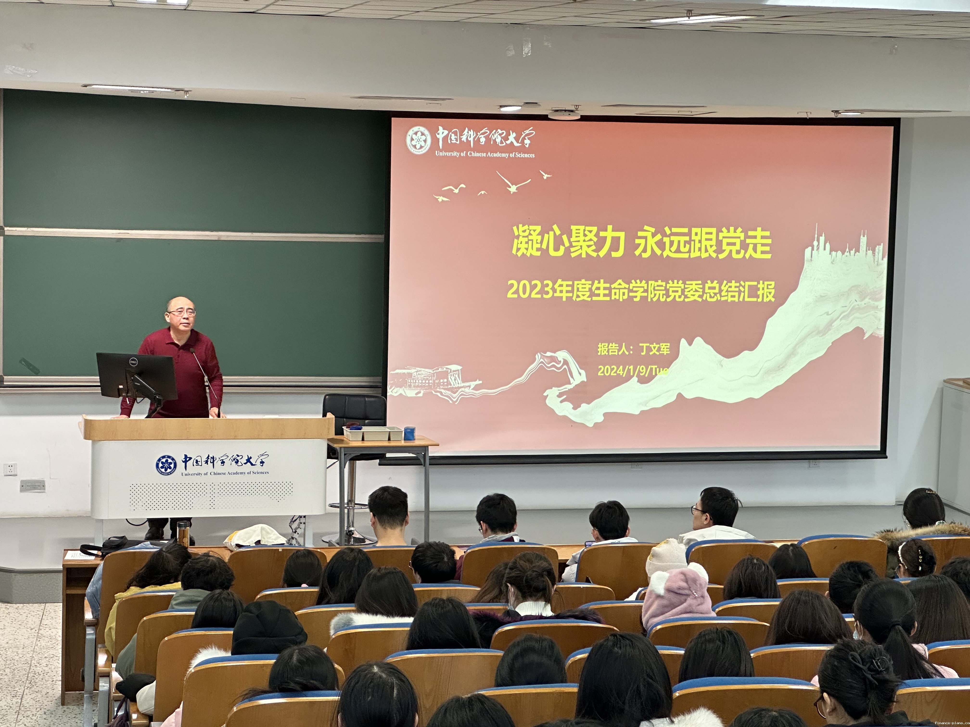 2024年1月9日上午9点,hth手机版登录入口生命学院于教二101室召开2023年度党委述职评议考核会。党委书记丁文军教授代表学院党委向生命学院党员同志作2023年度工作述职报告,并讲授“凝心聚力,永远跟党走”主题党课。本次会议由党委副书记王洁婷老师主持,学院近300名师生党员参加。