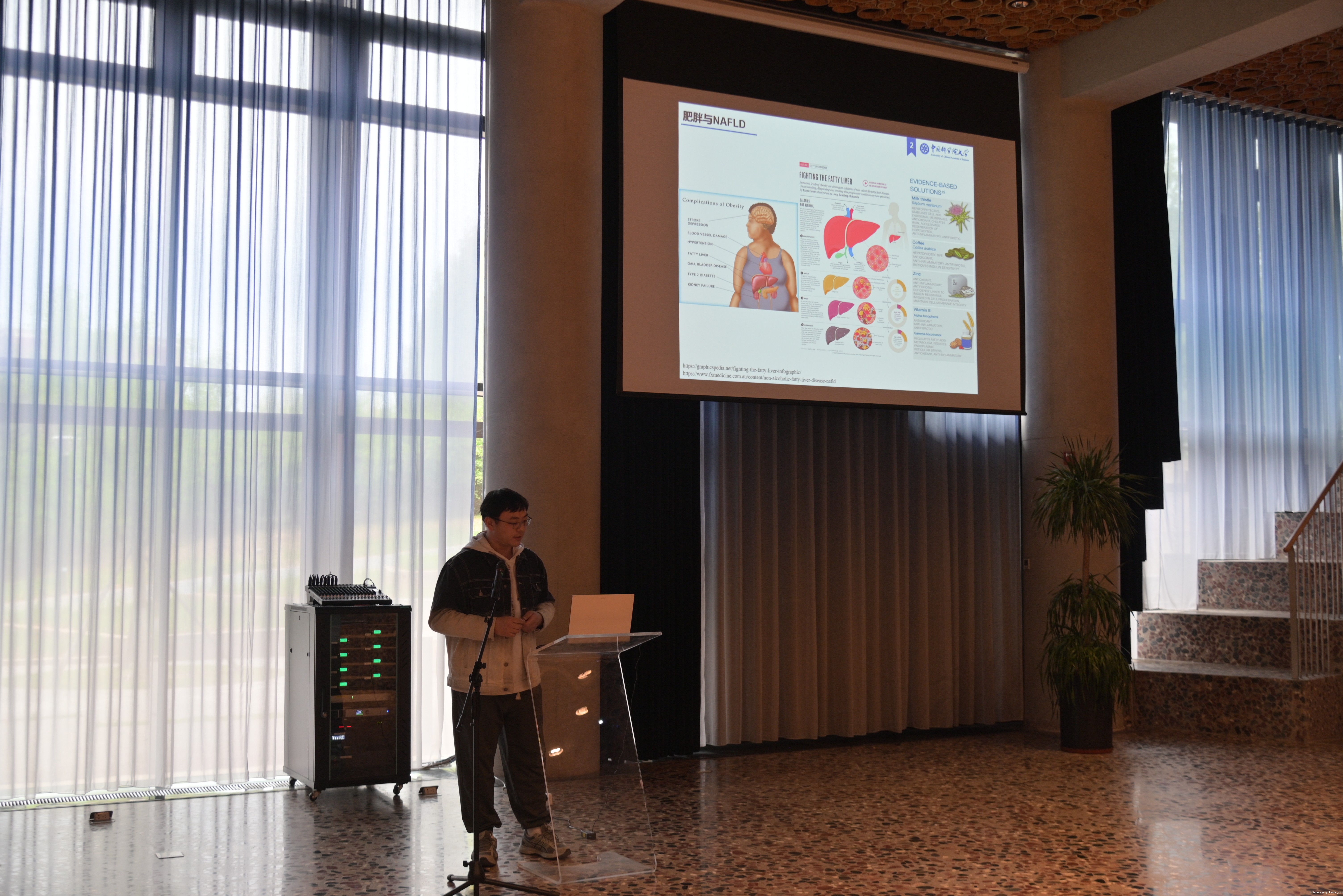 来自环境与健康课题组的陈汝龙同学以“AMPKα/PGC1α/OPA1通路和线粒体能量代谢在VOdipic-Cl改善高脂诱导肝线粒体功能障碍中的分子机制”为题作报告。他以肥胖小鼠为疾病模型,从多组学联合分析出发,筛选到VOdipic-Cl发挥作用的潜在机制,并在细胞水平上进行验证,最终确定VOdipic-Cl通过激活AMPKα/PGC1α/OPA1通路调节线粒体能量代谢来缓解脂肪肝。
