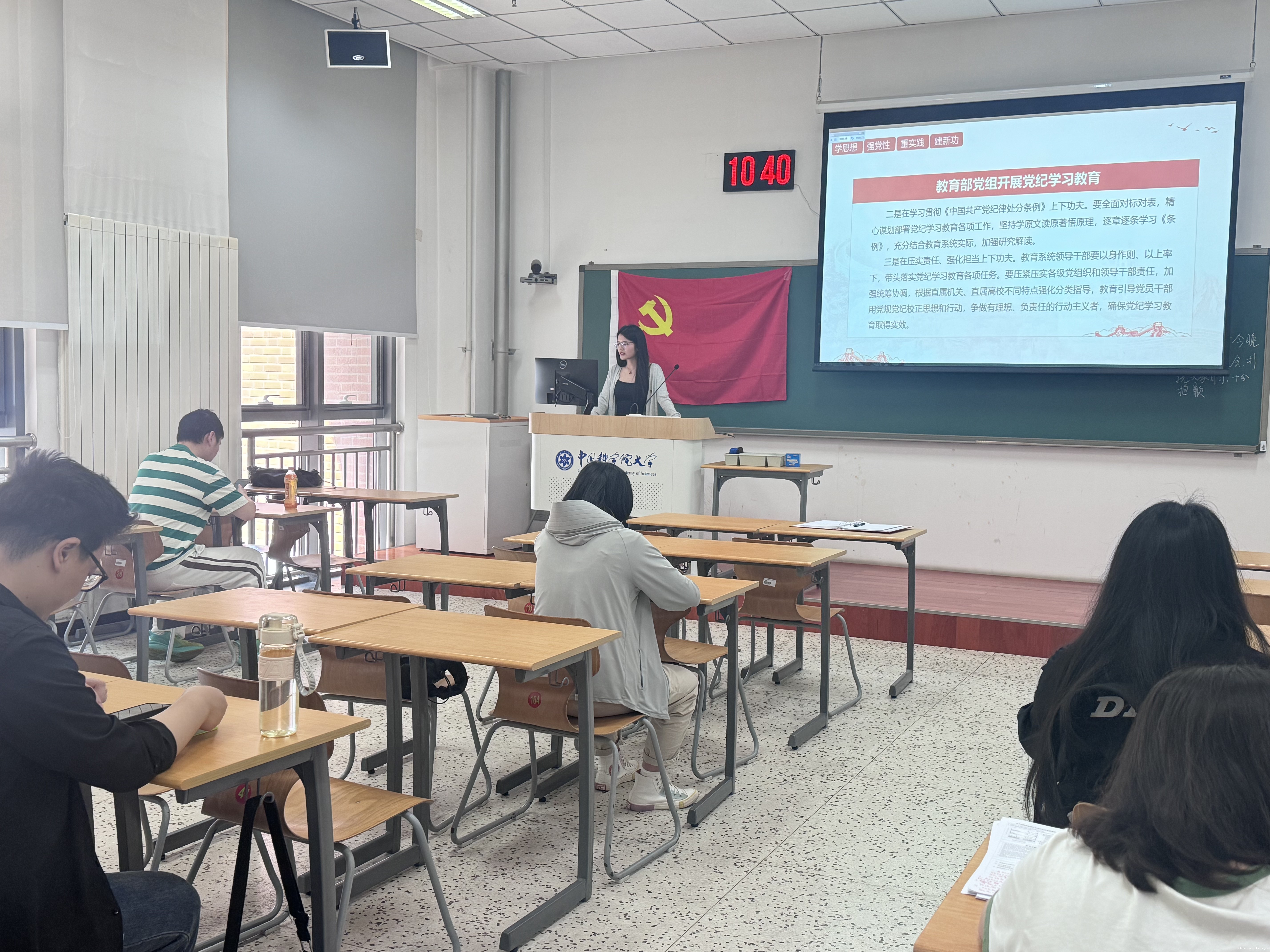 会议第一项,简心怡同志领学各级对党纪学习教育工作的部署,支部党员深刻理解了党纪学习的重要性,领会了习近平总书记关于党纪学习教育的重要指示精神,更加明确了党员的责任与使命,更加坚定了学党纪、守党纪的决心。
