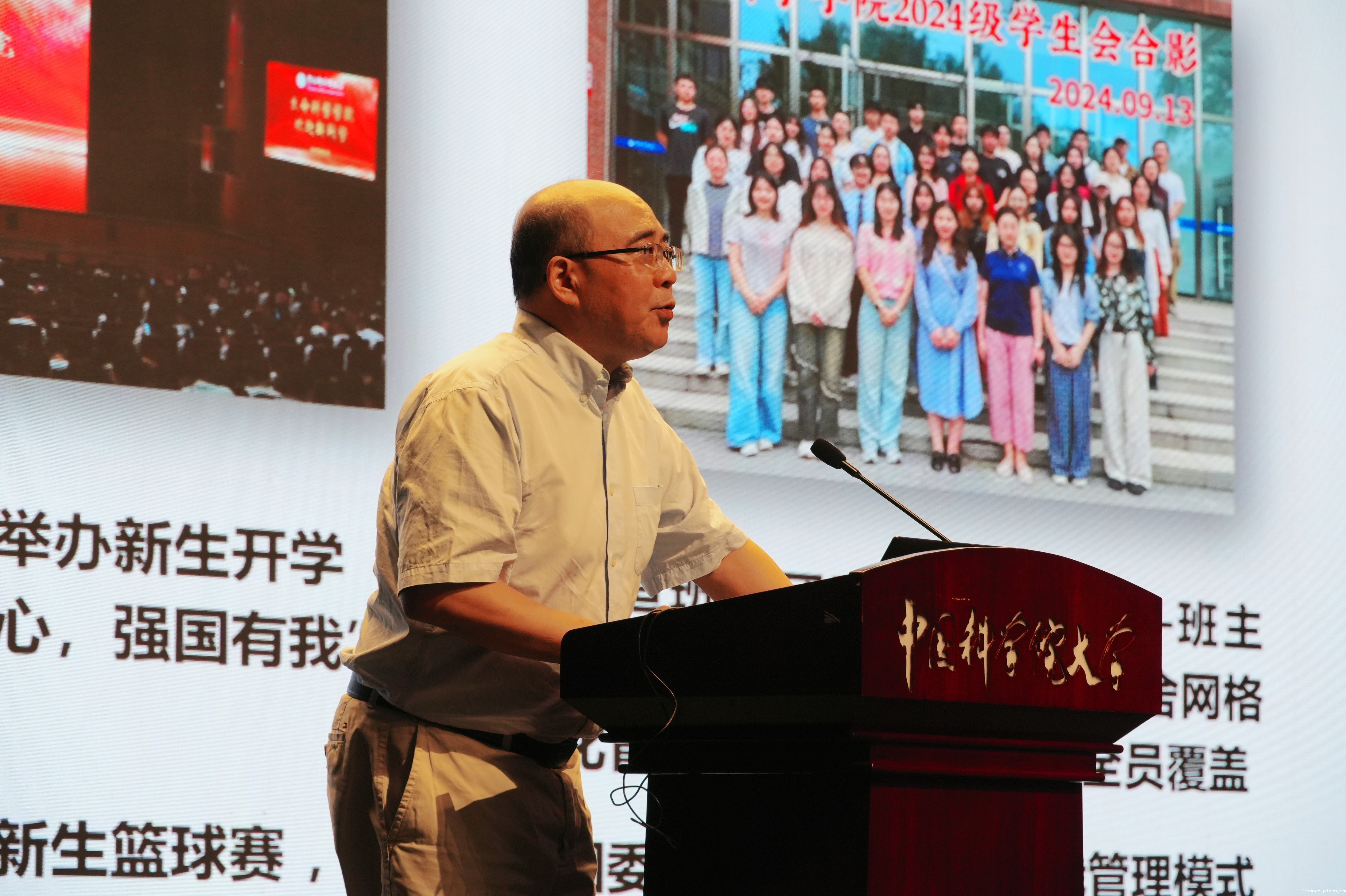 典礼伊始,华体育会app官方下载官网院长韩斌院士为全体新生致欢迎辞。韩院士指出国科大“科教融合”的办学模式形成了其独特的学术氛围和科研优势,勉励大家珍惜相聚于此的缘分,积极利用跨学科、跨领域的交流机会,主动拓展合作、促进融合,不断提升科研创新能力。韩院士强调,国科大作为国家战略科技力量的重要组成部分,承担着一系列重大科研任务,呈现出区别于普通高校的科教融合特色。他特别叮嘱同学们在科研道路上要保持身心健康,以积极心态应对挑战,实现高效学习和工作。他还指出,生命科学事关人类健康、农业发展及生态保护,当前正迎来大数据与人工智能带来的新发展机遇,鼓励同学们主动掌握前沿技术,融汇实验与计算思维,开拓科研新境界。
