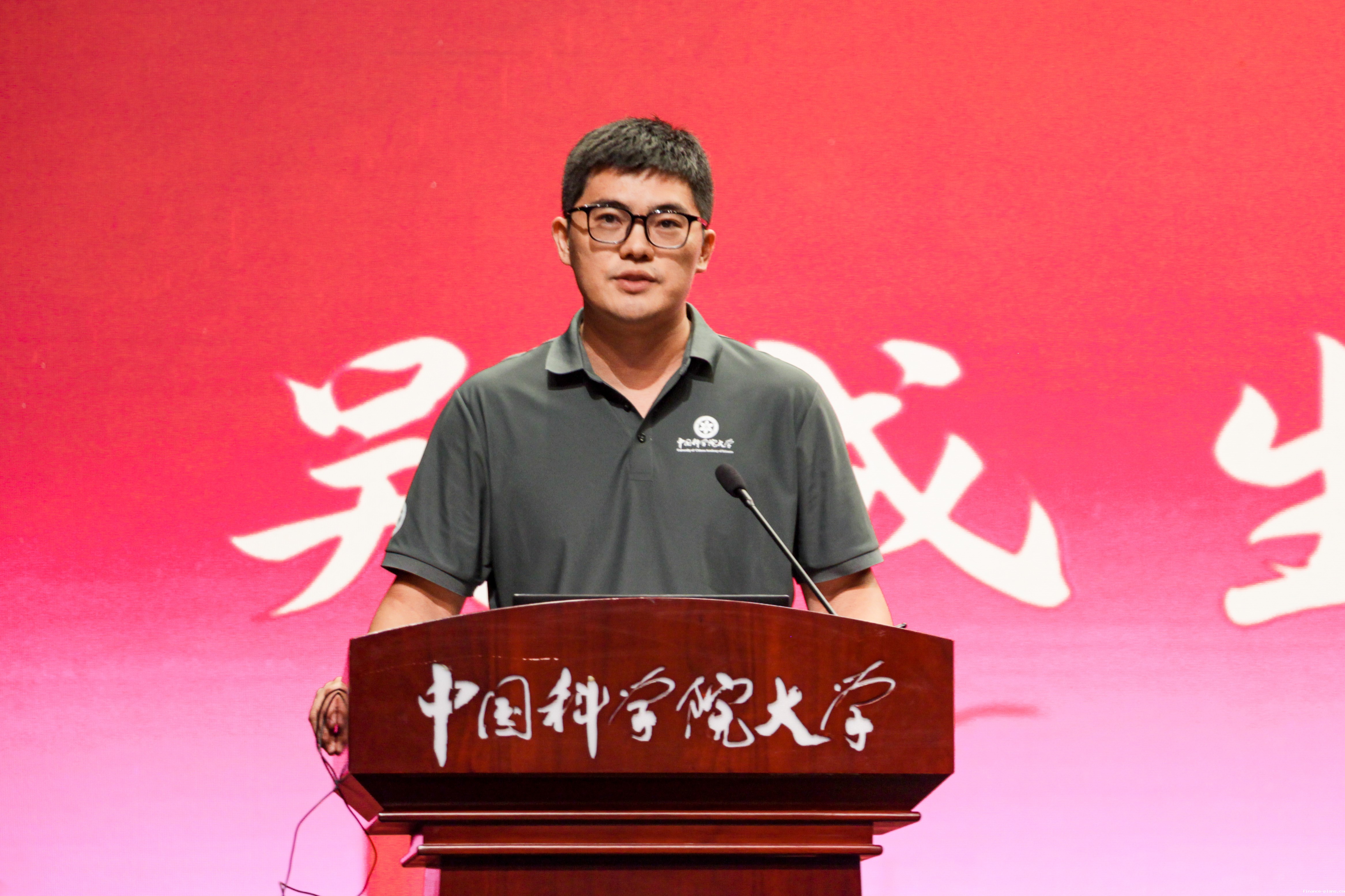 2025级新生代表陈永博在发言中回应了师长的殷切期望。他谈到,观看纪念中国人民抗日战争暨世界反法西斯战争胜利80周年阅兵仪式的经历,让他深刻感受到科技强国与国家安全的深远意义。中国科学院与“两弹一星”纪念馆中老一辈科学家隐姓埋名、自力更生的奉献精神令他深受触动。陈永博表示,作为国科大学子,生逢盛世、肩负重任,应当将个人的科研追求与国家战略需求紧密相连。他呼吁同学们珍惜宝贵的学术资源,勇攀生命科学的高峰,真正“把论文写在祖国的大地上”,努力成长为堪当民族复兴大任、值得国家与人民托付的科技力量。