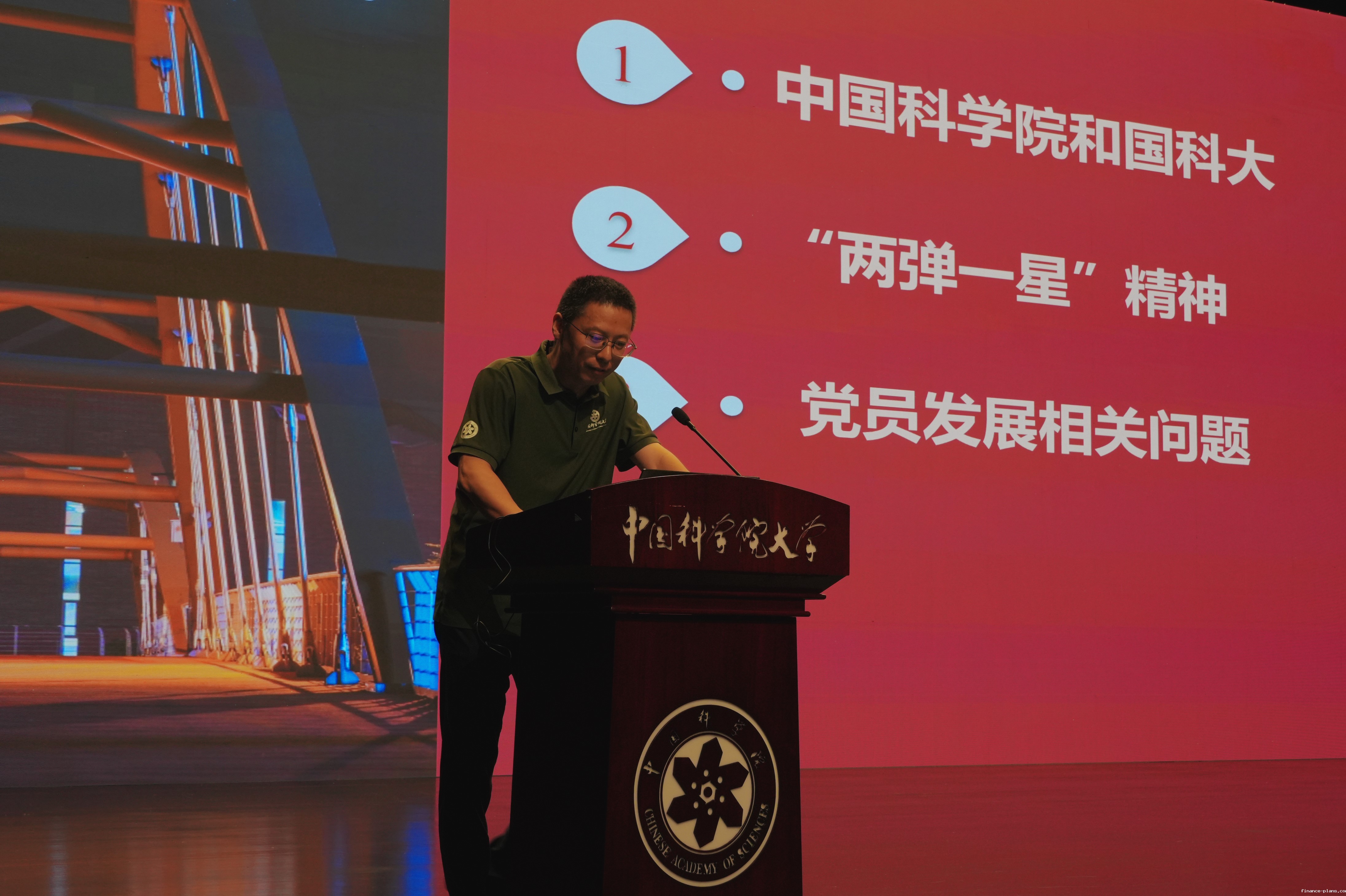 秦晓飞老师首先回顾了9月3日纪念中国人民抗日战争暨世界反法西斯战争胜利80周年阅兵仪式,指出这是在全面推进中国式现代化新征程上的首次阅兵,展现了人民军队朝着建军百年奋斗目标迈进的崭新面貌。报告从中国科学院与国科大发展历程、“两弹一星”精神内涵以及党员发展与责任三个层面展开。秦老师与同学们共同学习了习近平总书记提出的“四个率先”和“两加快一努力”要求,重温了总书记对国科大学子“脚踏实地”的殷切寄语,并深刻阐释了“两弹一星”精神的时代内涵。